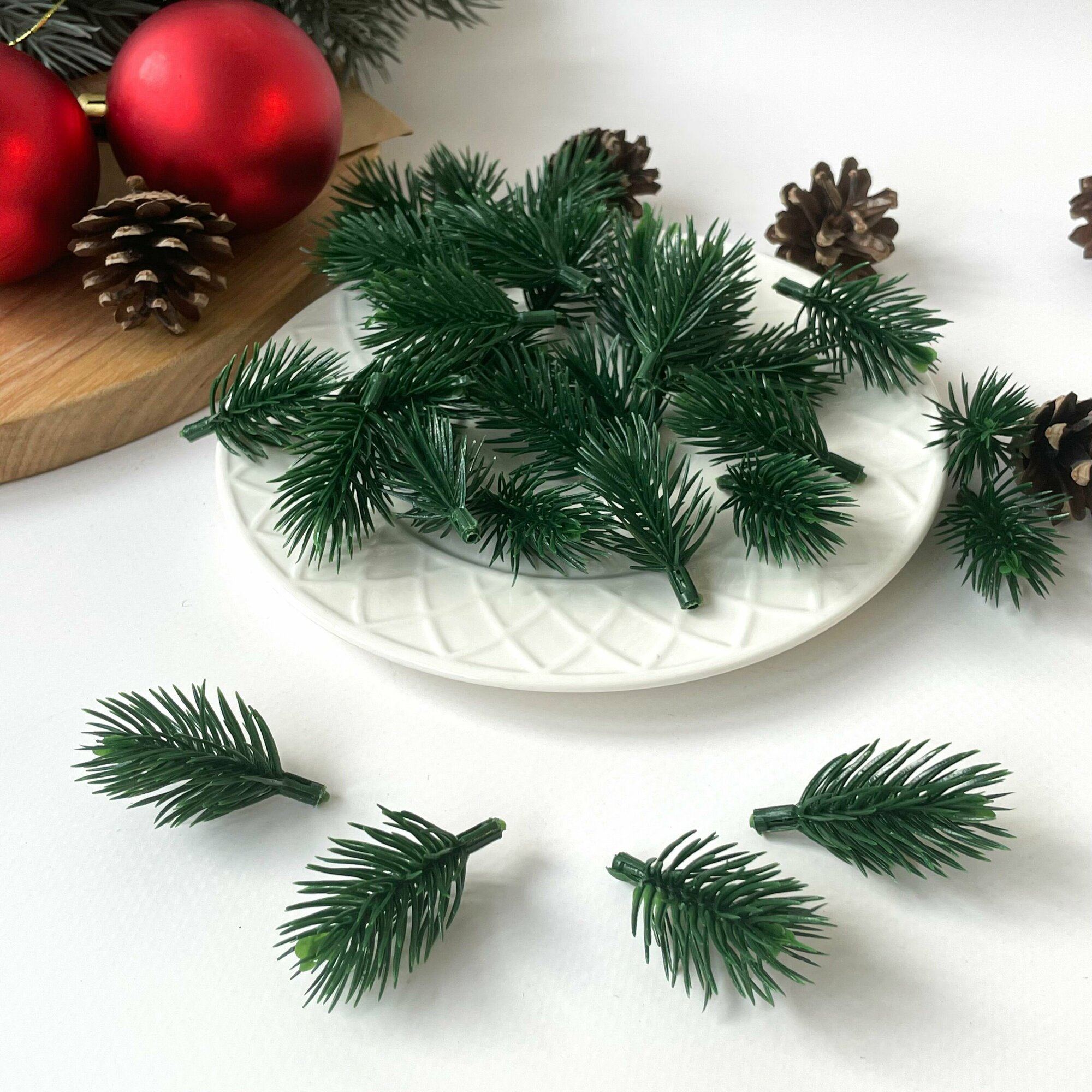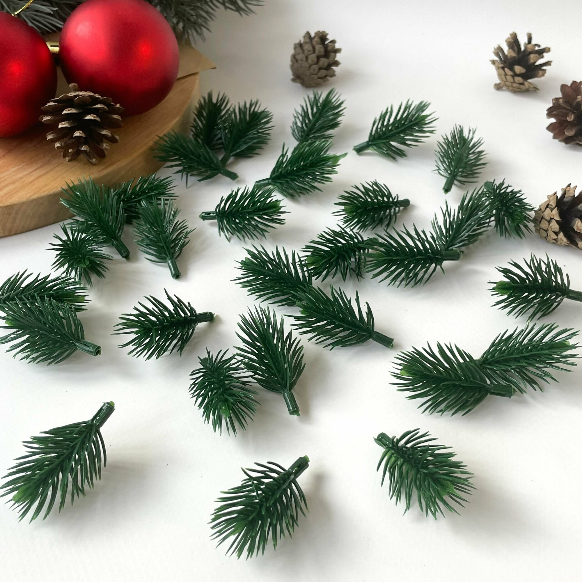 Еловая лапка искусственная, мини, декор зимний, рождественский, 5,5-6 см, 30 штук