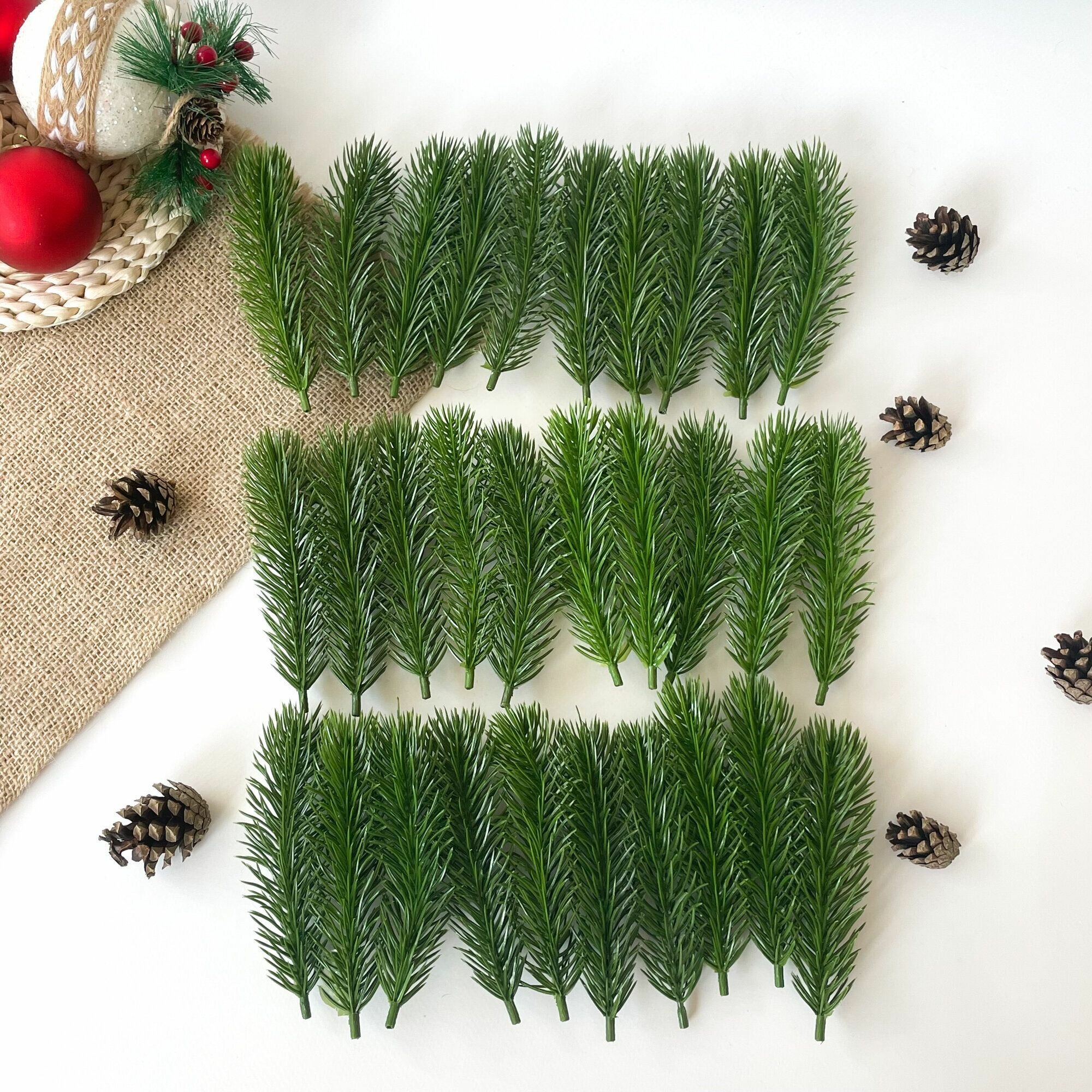 Еловая лапка искусственная, мини, декор зимний, рождественский, 5,5-6 см, 30 штук