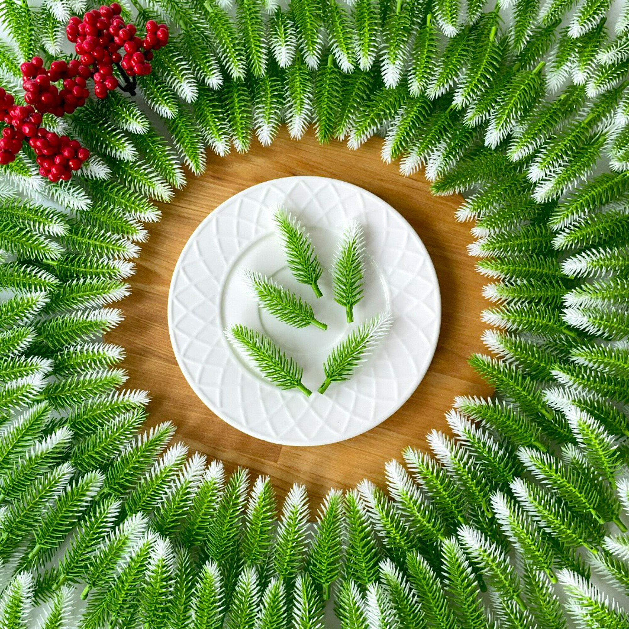 Еловая лапка искусственная, бело-зеленая, мини, декор зимний, рождественский, 5,5-6 см, 30 штук
