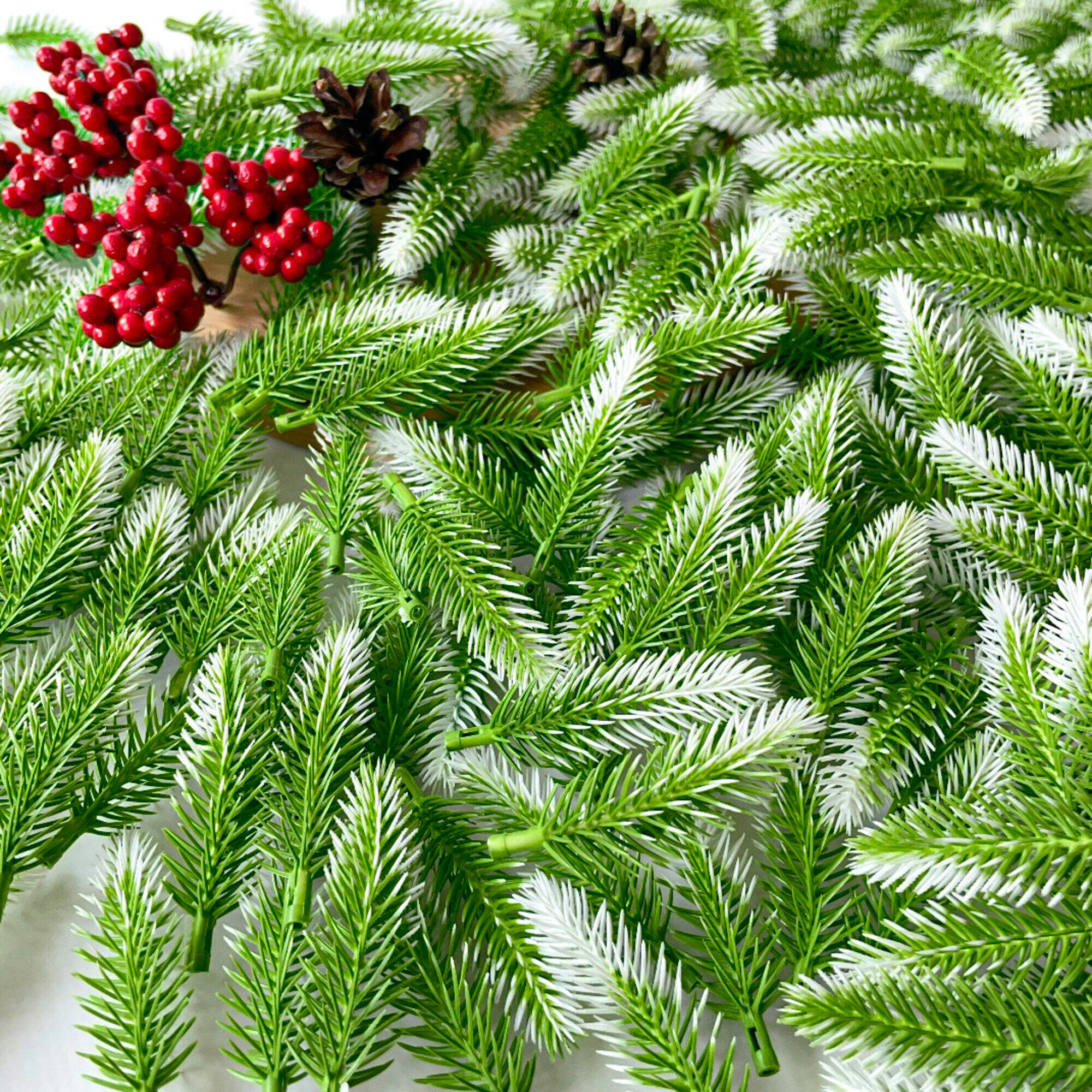 Купить Еловая лапка искусственная, бело-зеленая, мини, декор зимний, рождественский, 5,5-6 см, 100 штук