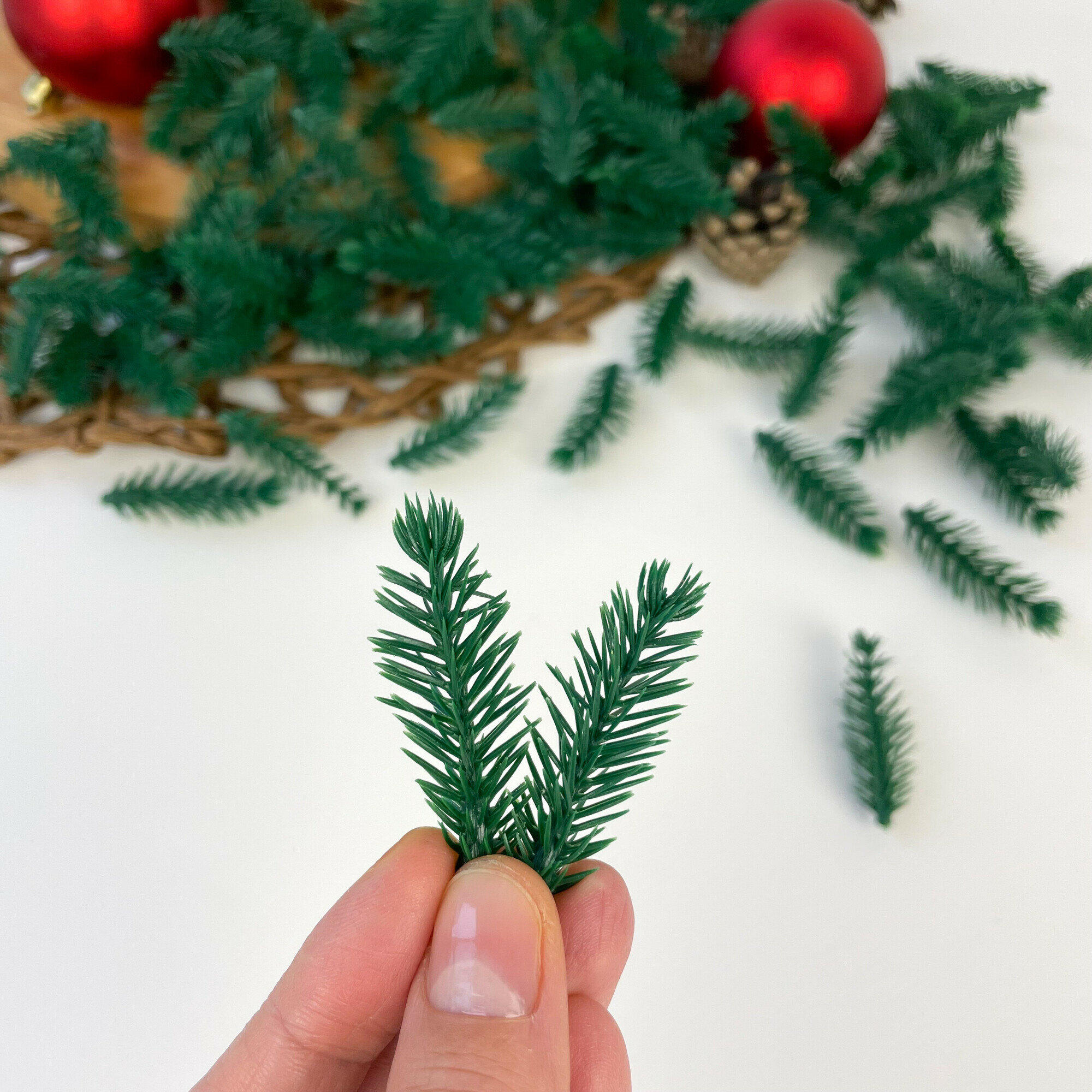 Еловые лапки искусственные для декора, Зеленые, мини, для новогодних поделок, 4,5 см, 100 штук