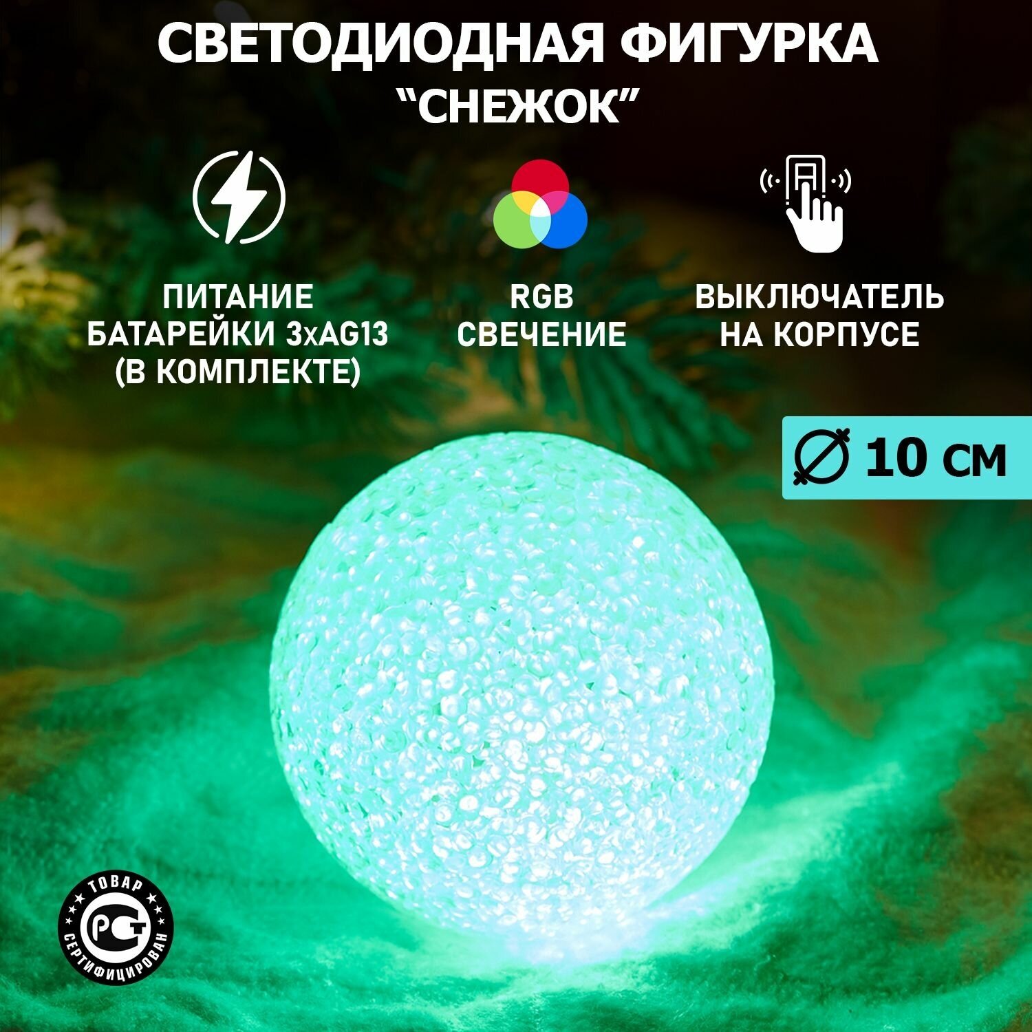 Светодиодная фигура Neon-Night "Снежок" со сменой цвета, 10 см интересное: