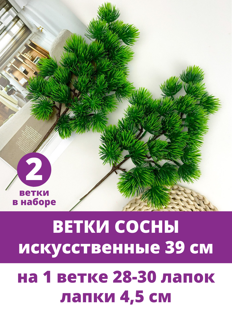 Сосна, хвойная ветка искусственная, декор зимний, рождественский, набор 2 ветки, 39 см интересное: