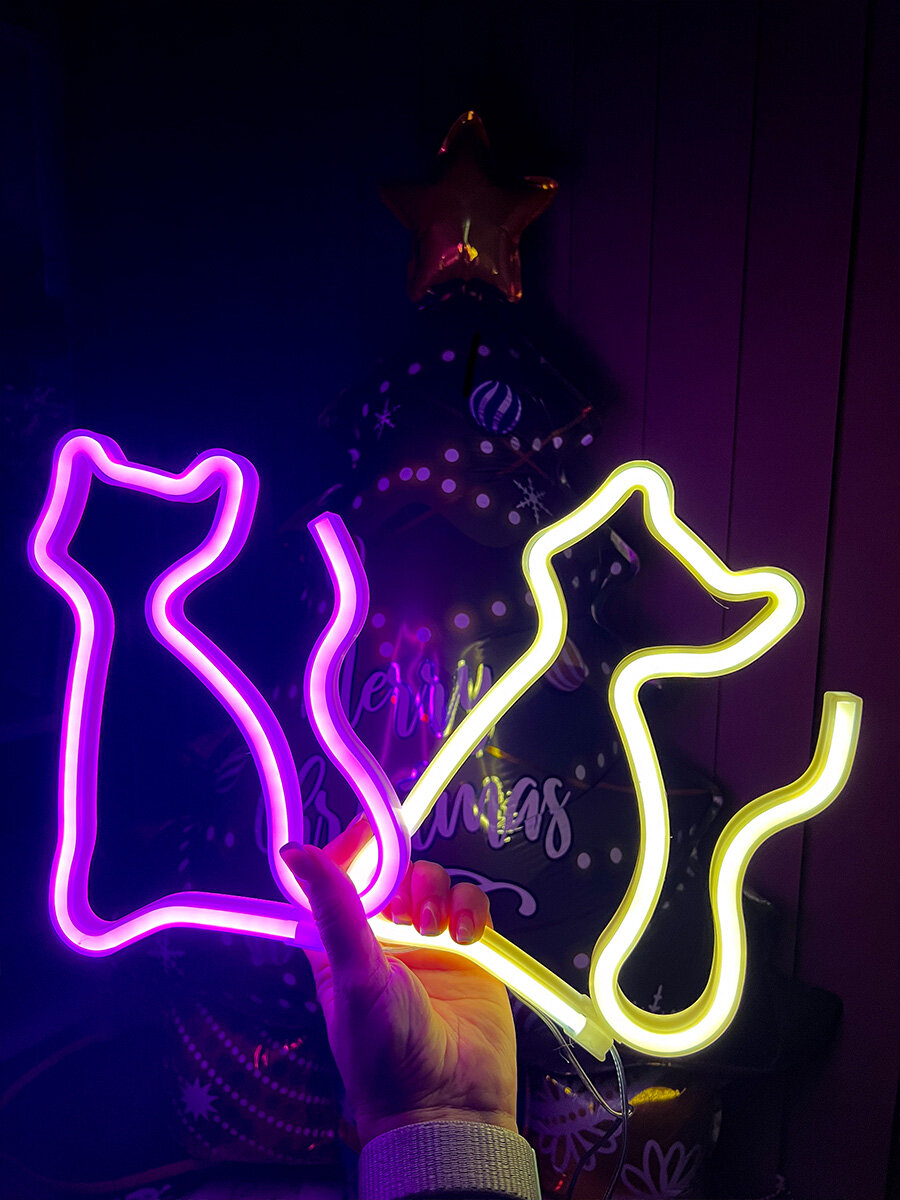 Неоновая вывеска светильник на стену кот с usb интересное:
