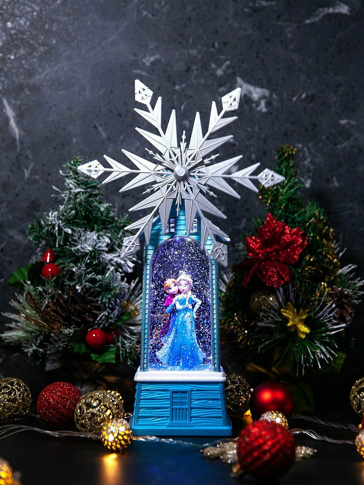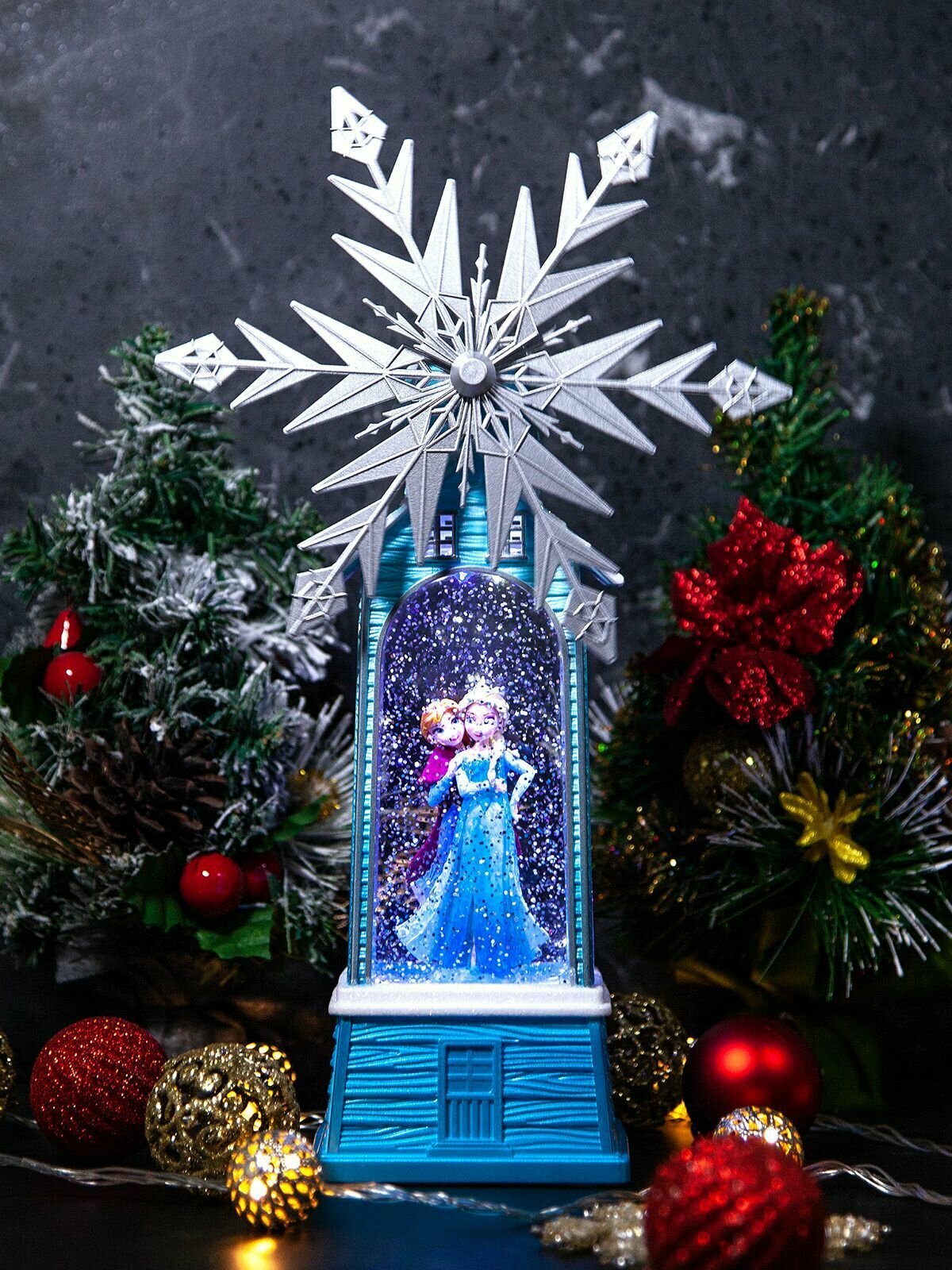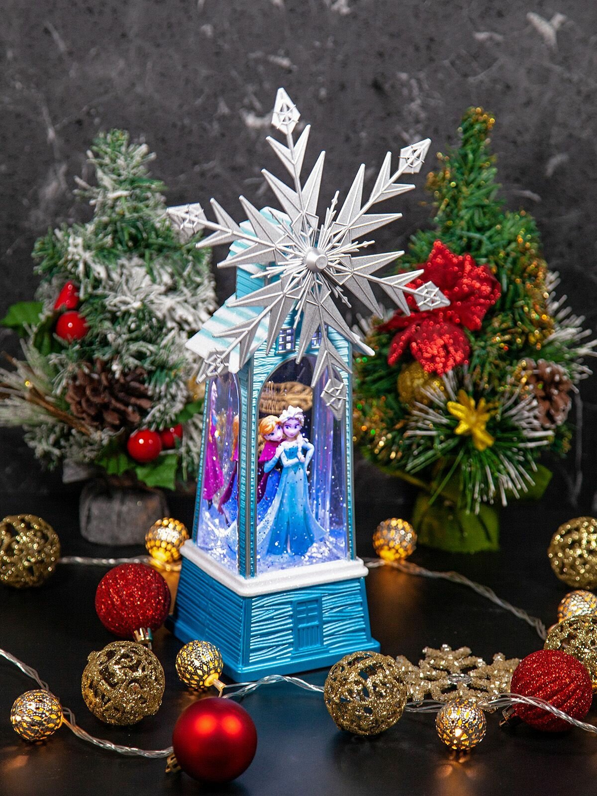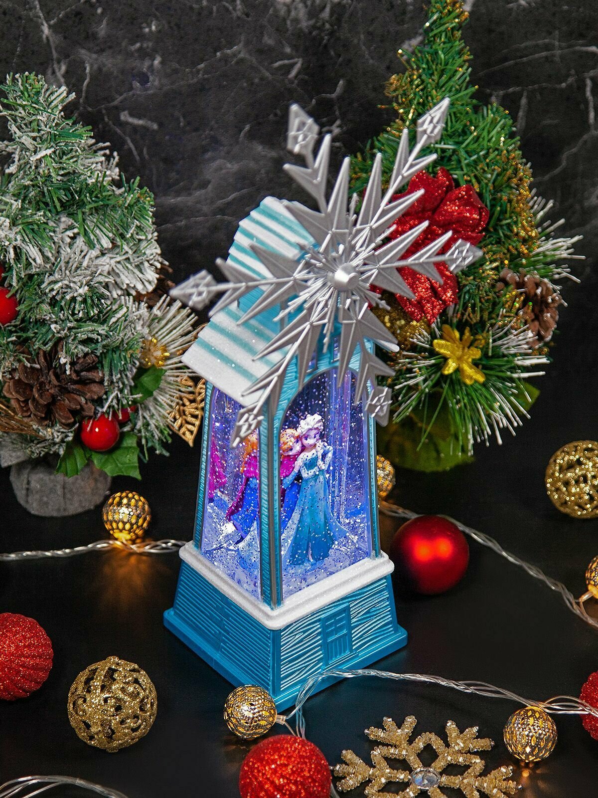 Купить Новогодний фонарь и светильник "Ледяная мельница" с метелью и встроенными мелодиями