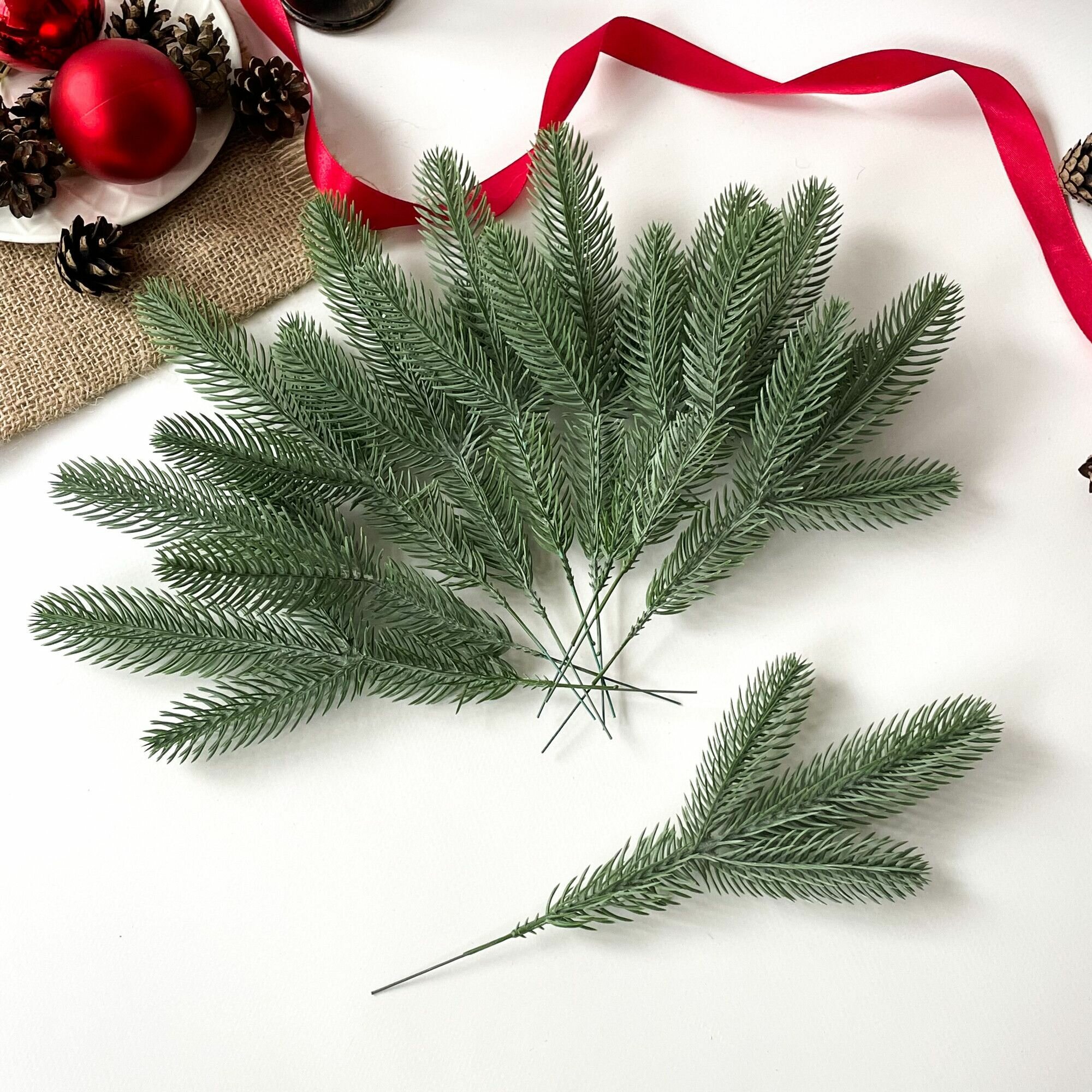 Еловые ветки искусственные, еловые лапки, 9 лапок на ветке, декор зимний, новогодний, 25 см, набор 20 веток