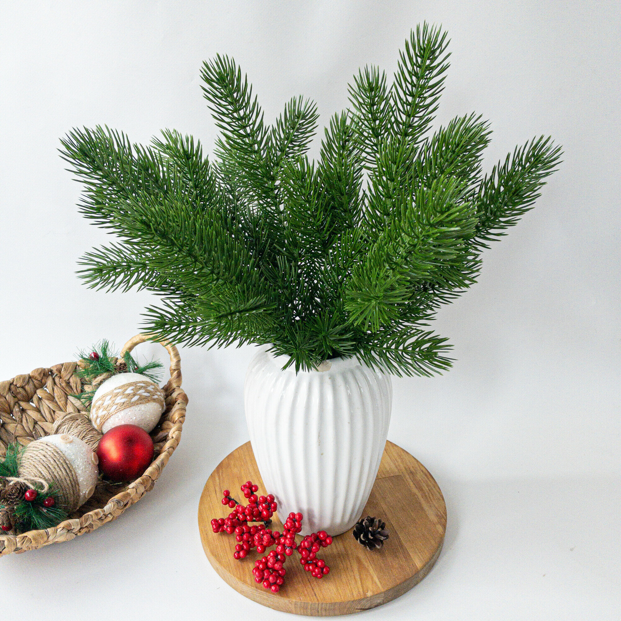 Еловые ветки для декора, искусственные, новогодний декор, 39 см, лапки 9-12 см, 20 веток.
