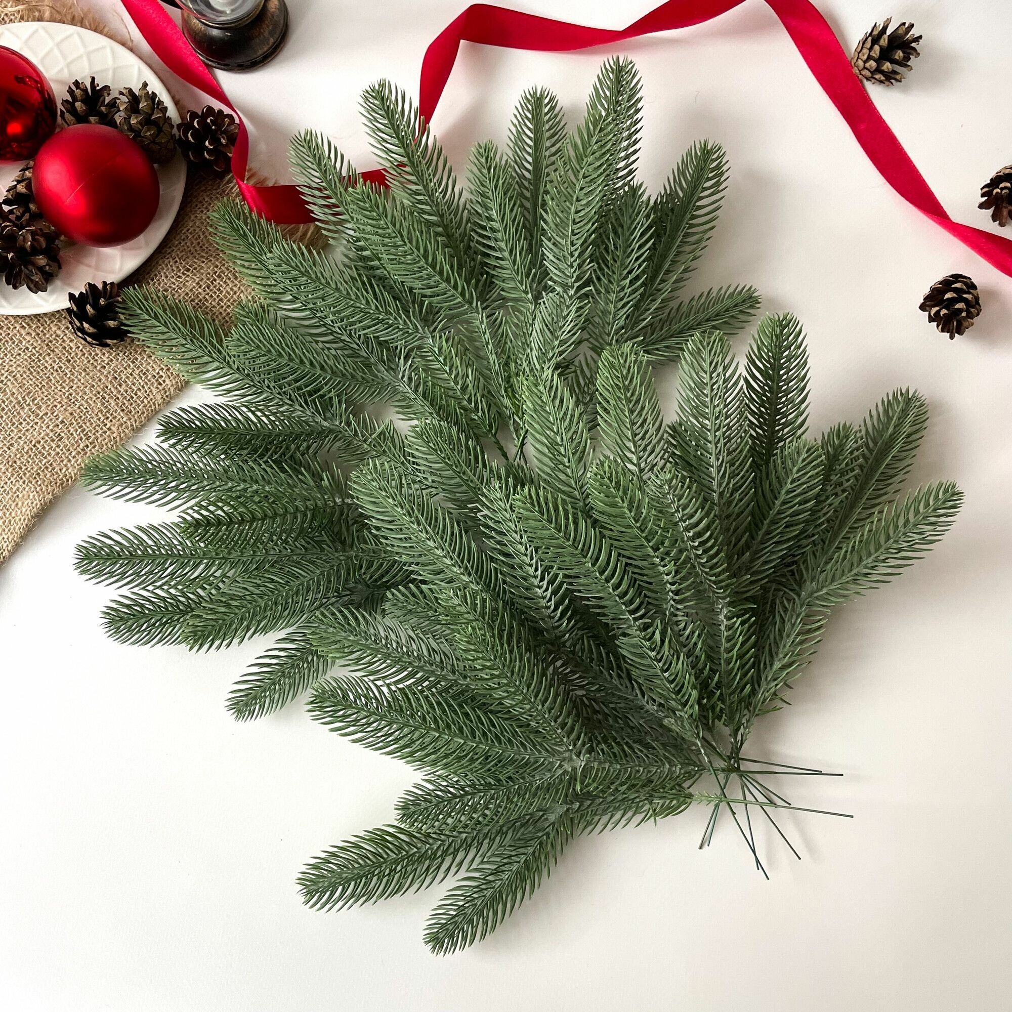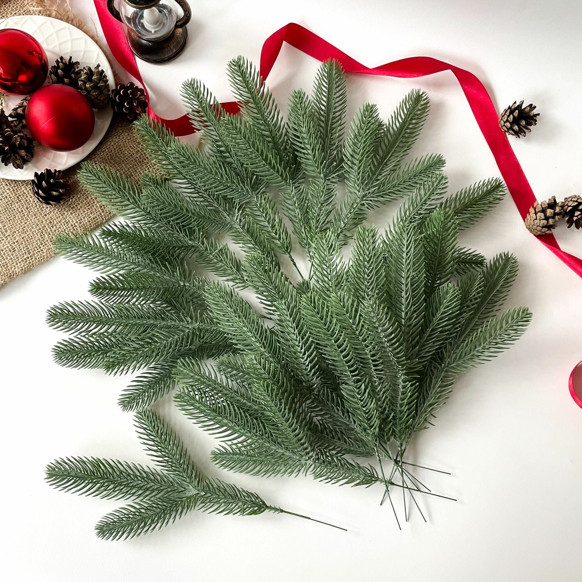Еловые ветки для декора, искусственные, новогодний декор, 39 см, лапки 9-12 см, 20 веток.