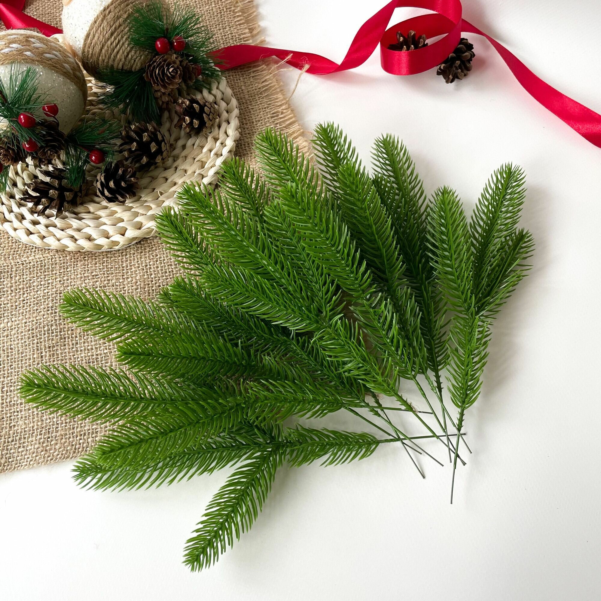 Еловые ветки искусственные, еловые лапки, 9 лапок на ветке, декор зимний, новогодний, 25 см, набор 20 веток