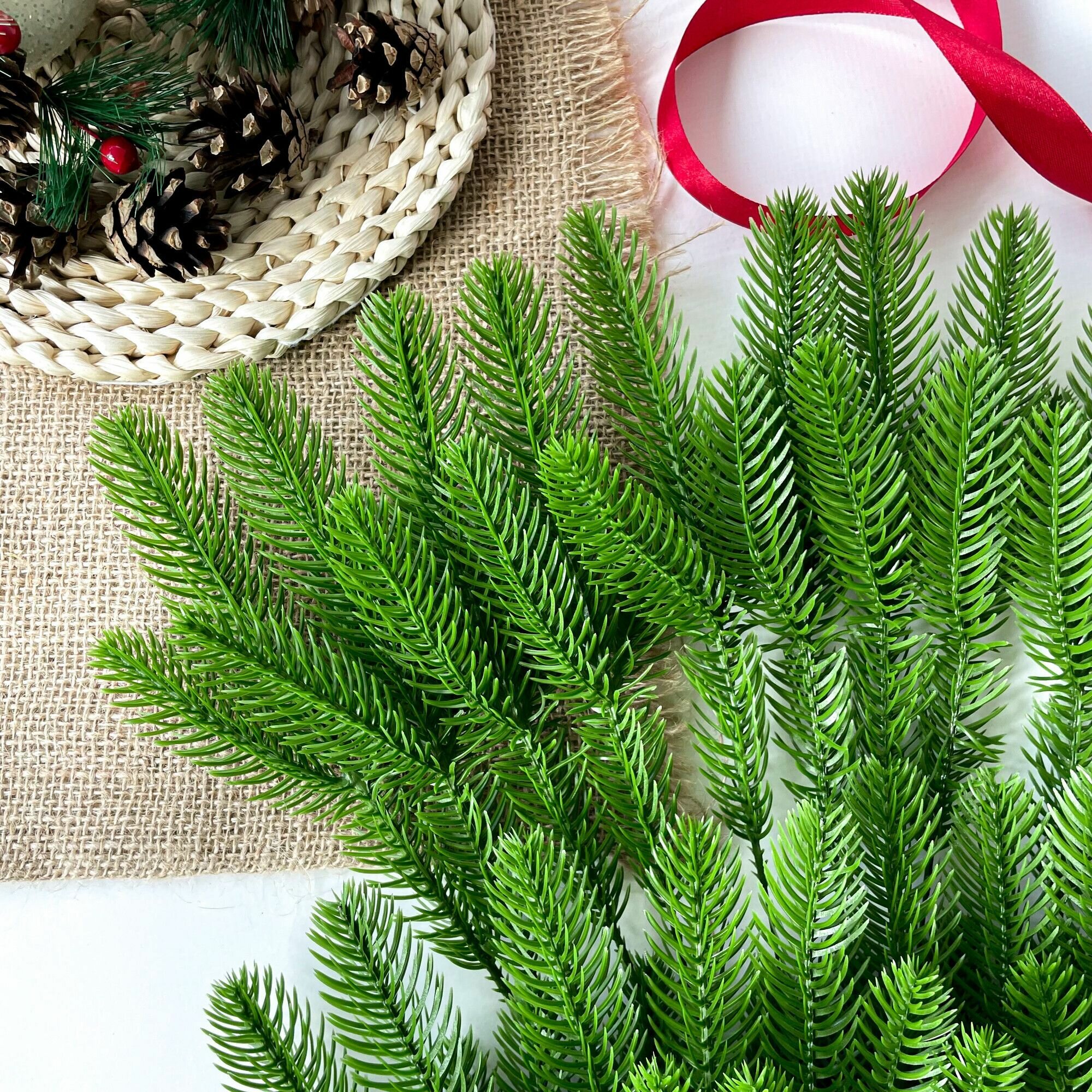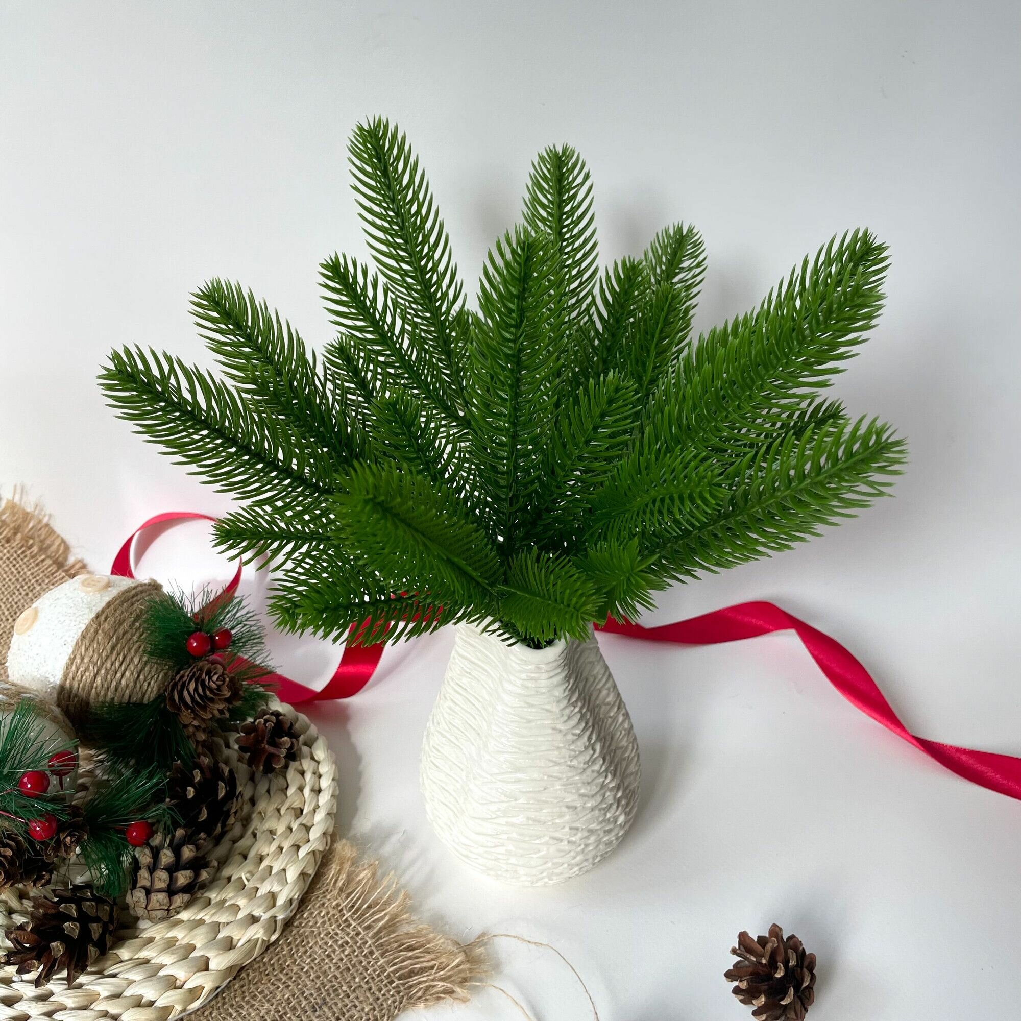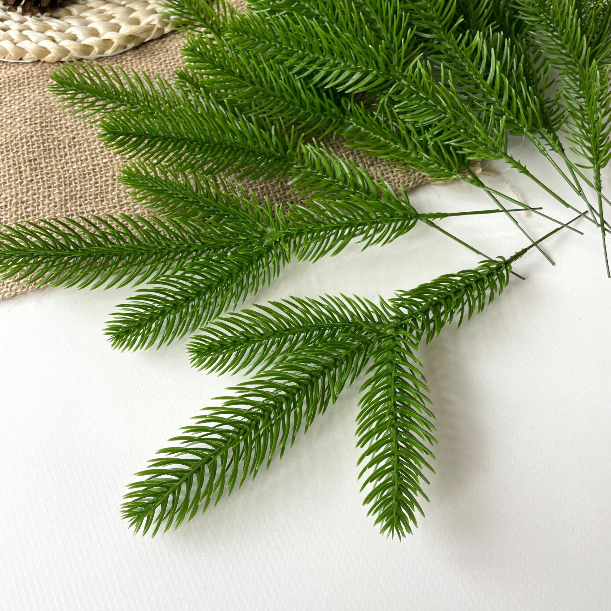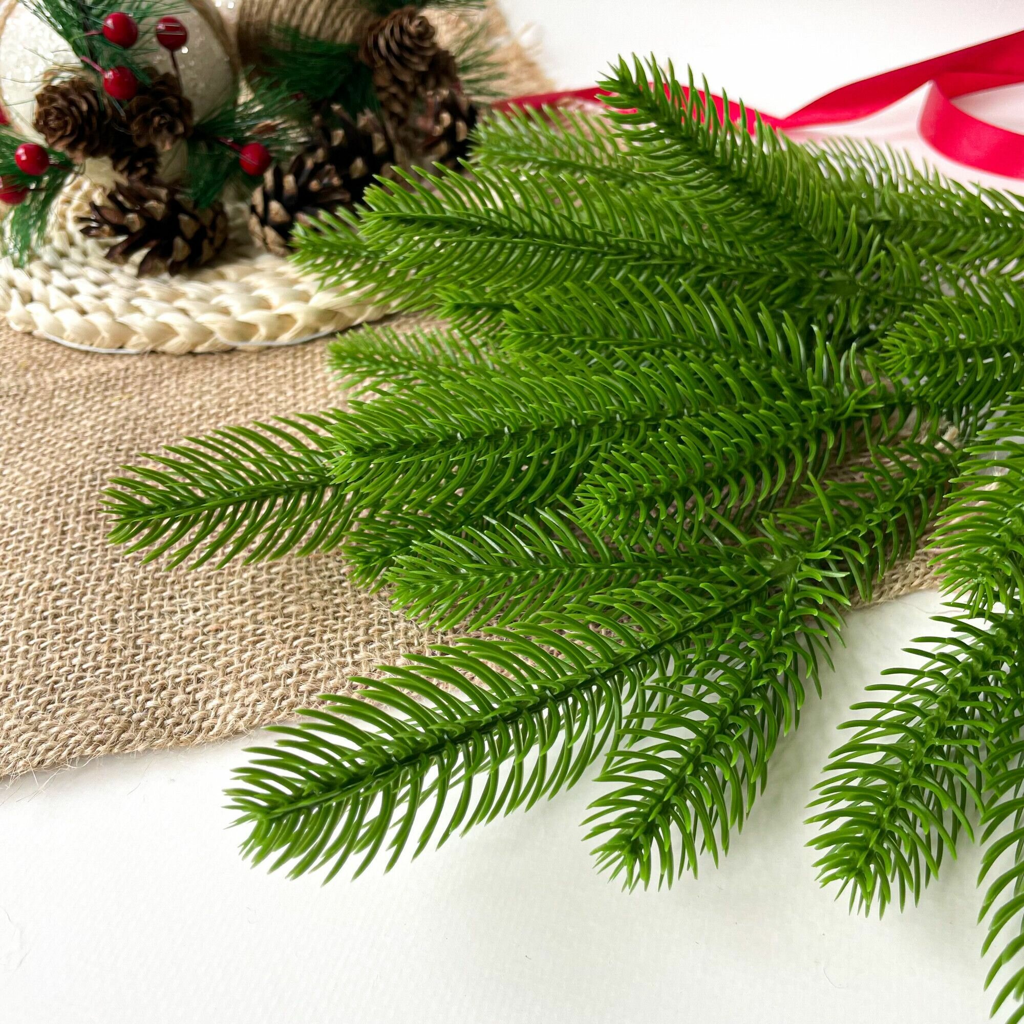 Еловые ветки для декора, искусственные, новогодний декор, 39 см, лапки 9-12 см, 10 веток.