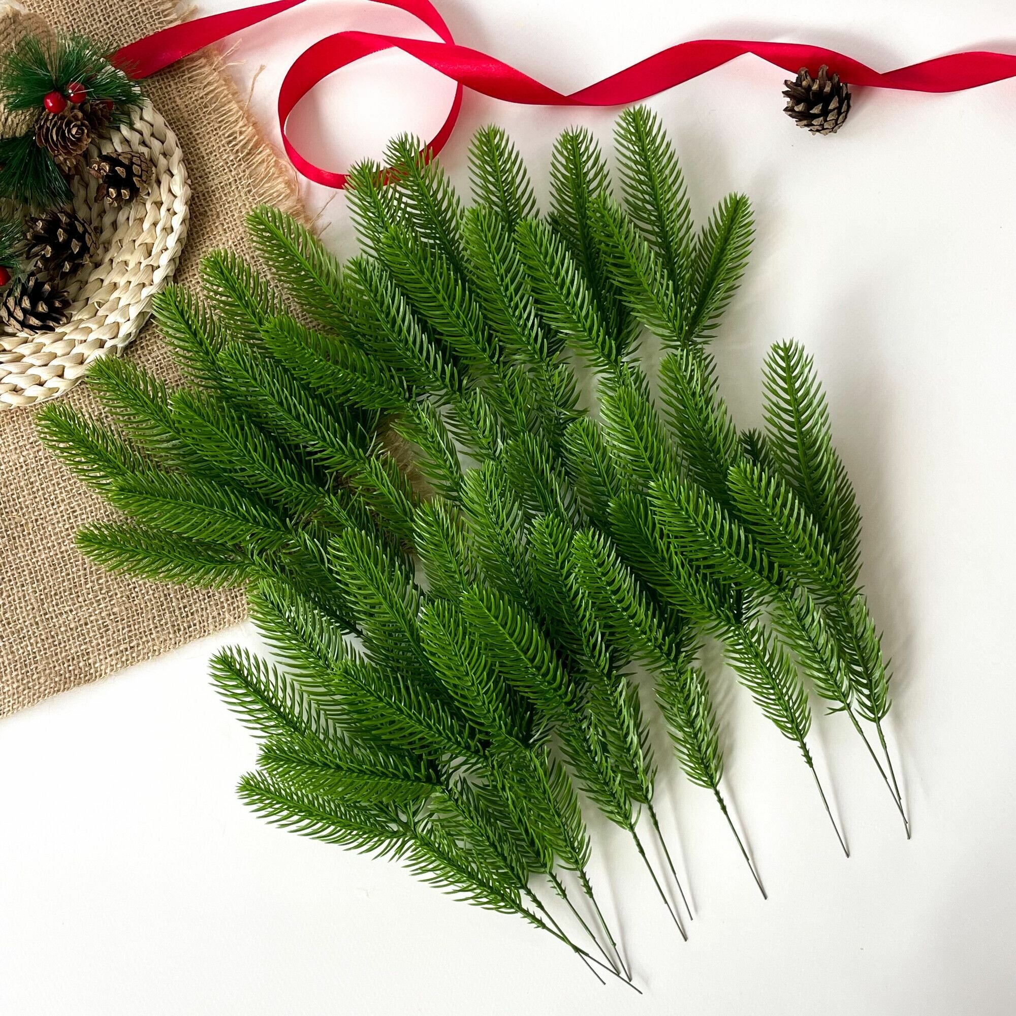 Еловые ветки для декора, искусственные, новогодний декор, 39 см, лапки 9-12 см, 20 веток.