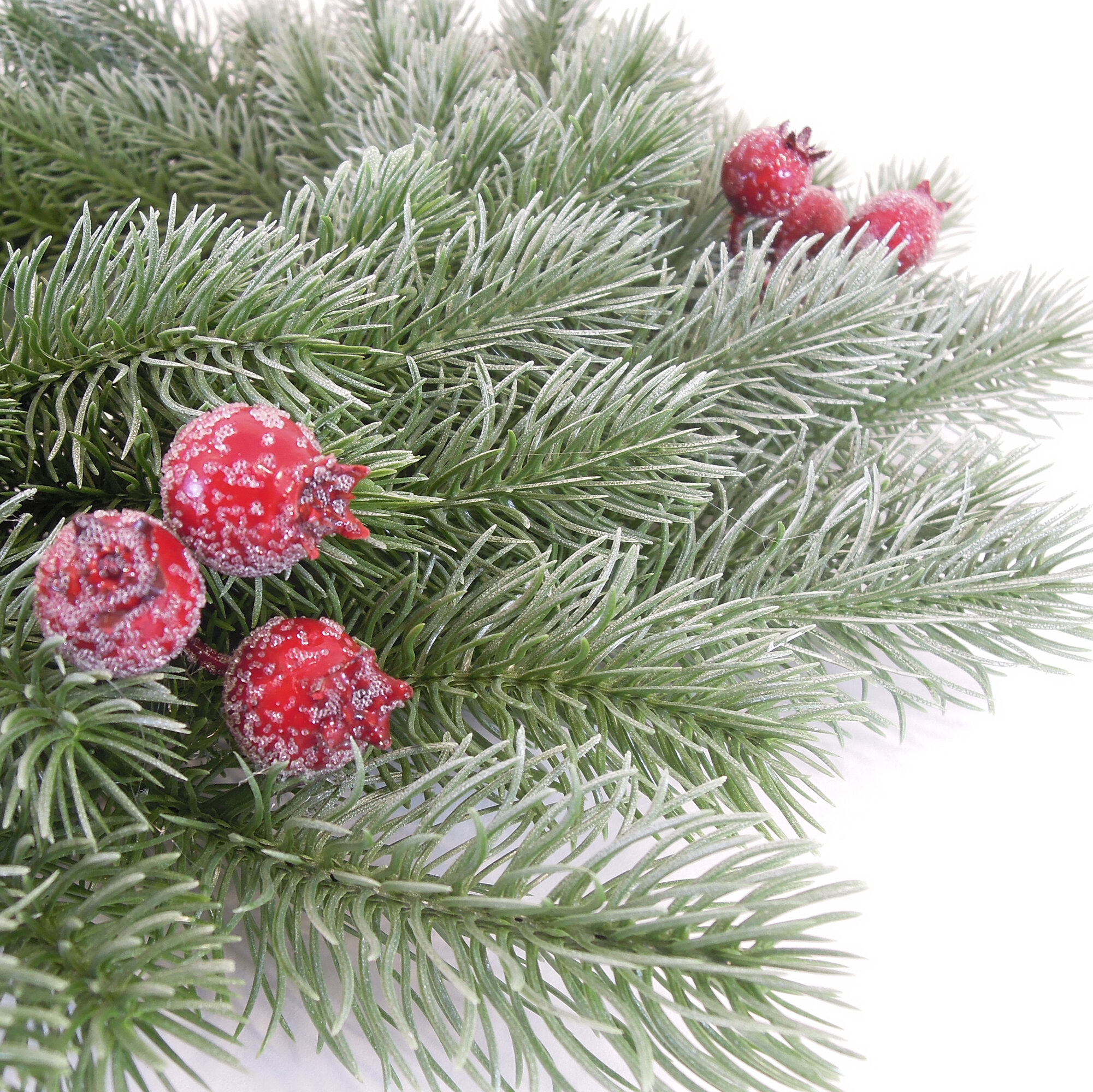 Венок новогодний еловый, с эффектом патины, заснеженности, с ягодами, искусственный, 31 см, 1 шт.