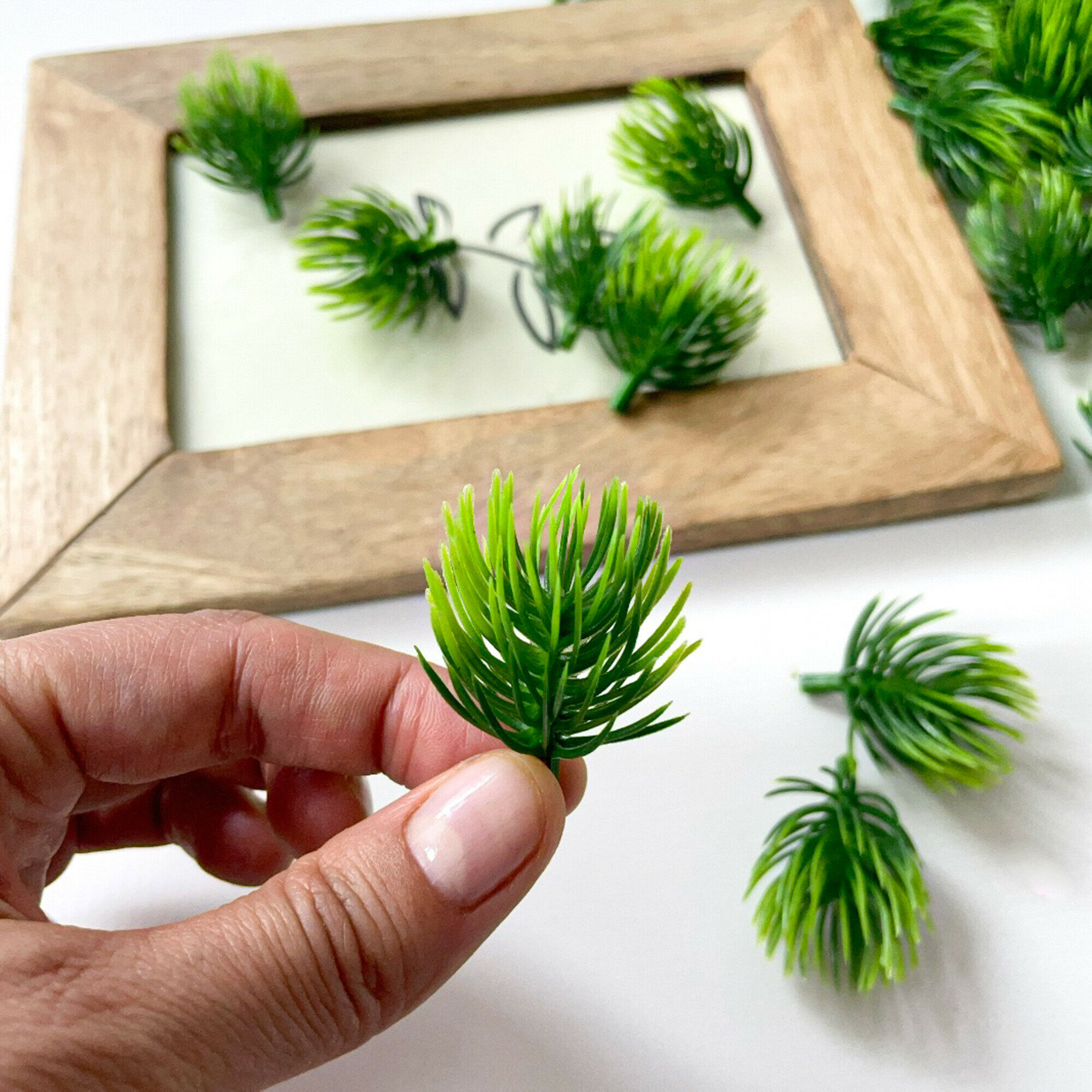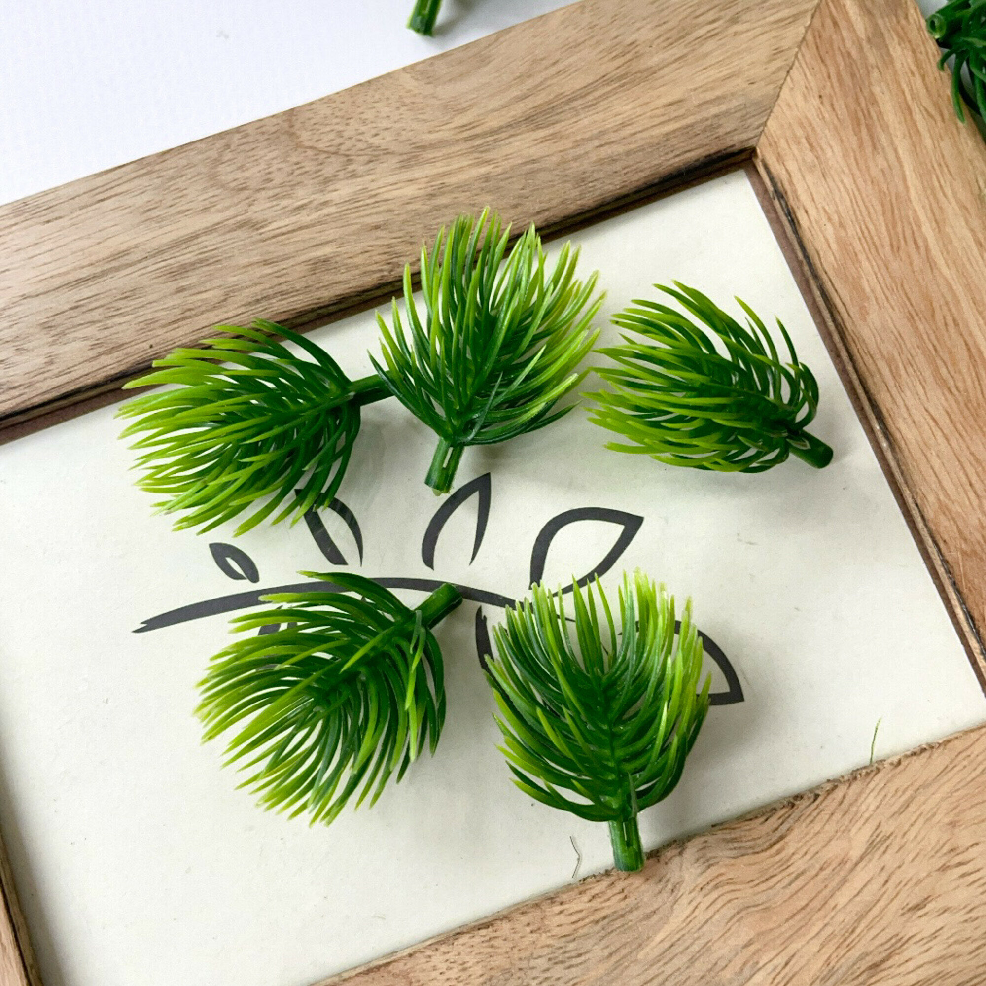 Еловые лапки искусственные, мини, ветки для декора, творчества, поделок, Бело-зеленые 6 см, 50 штук