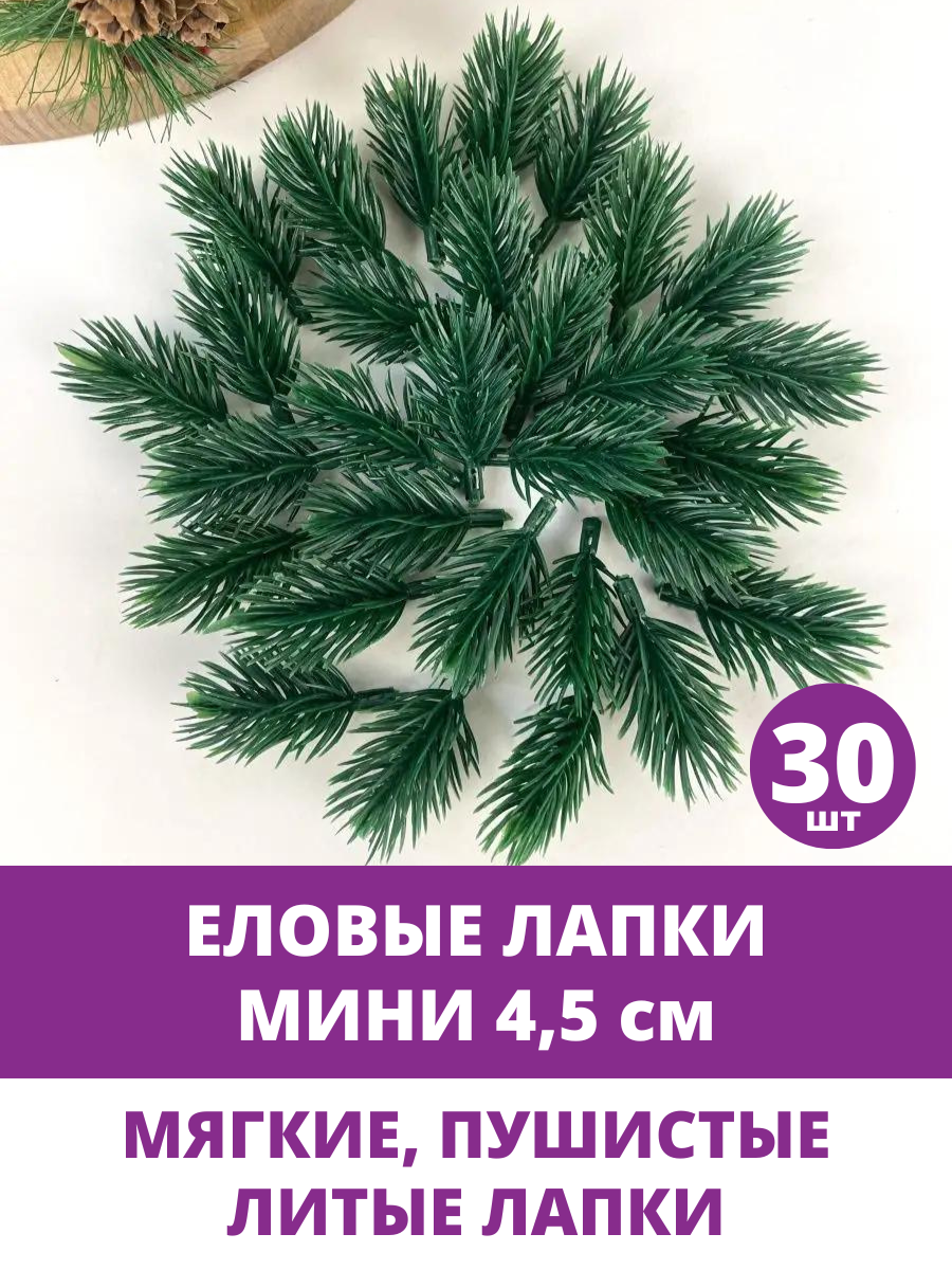 Еловая лапка Мини, еловая ветка Мини искусственная, декор зимний 4,5 см, 30 штук