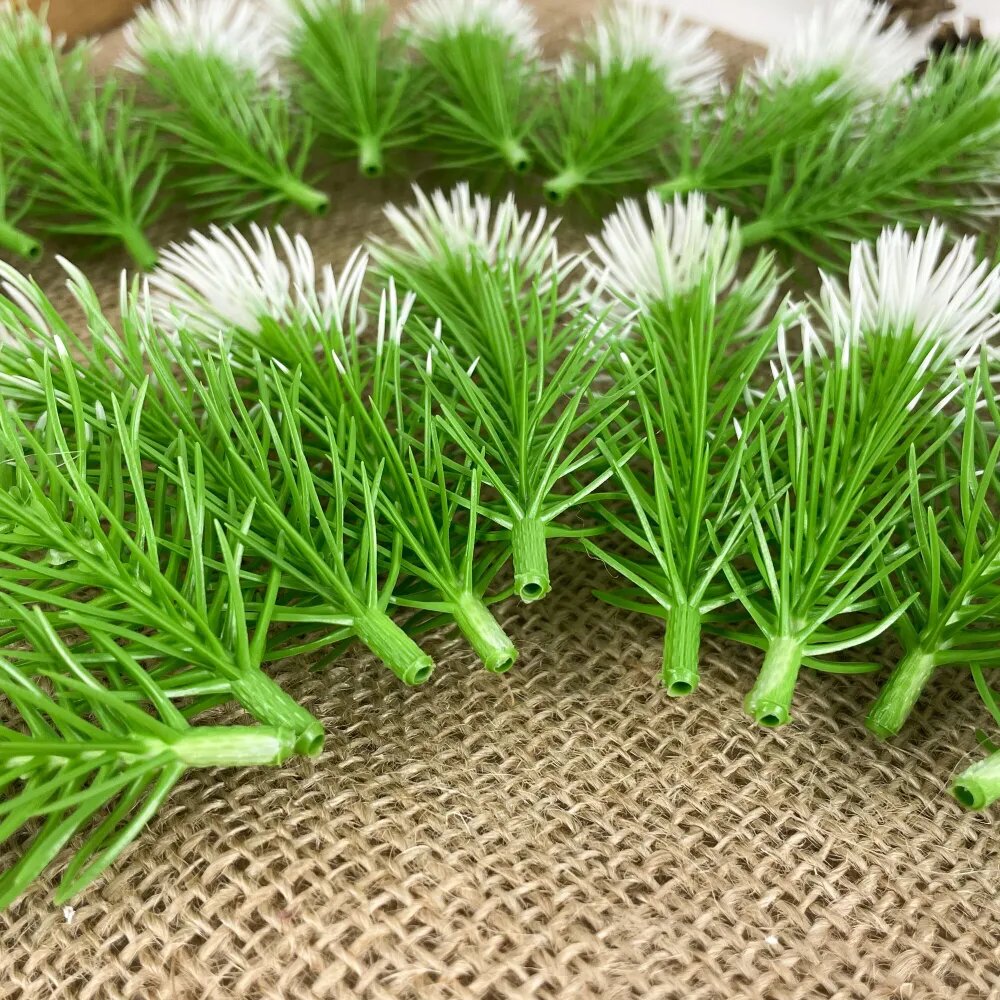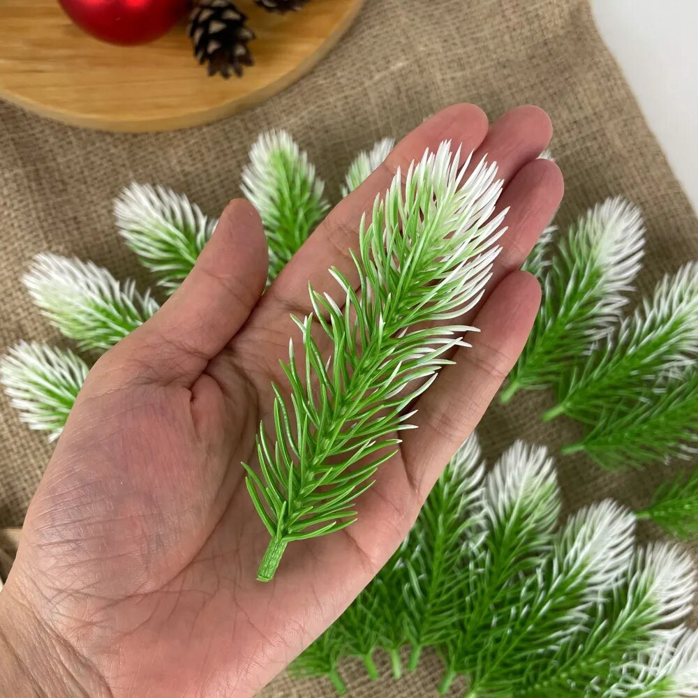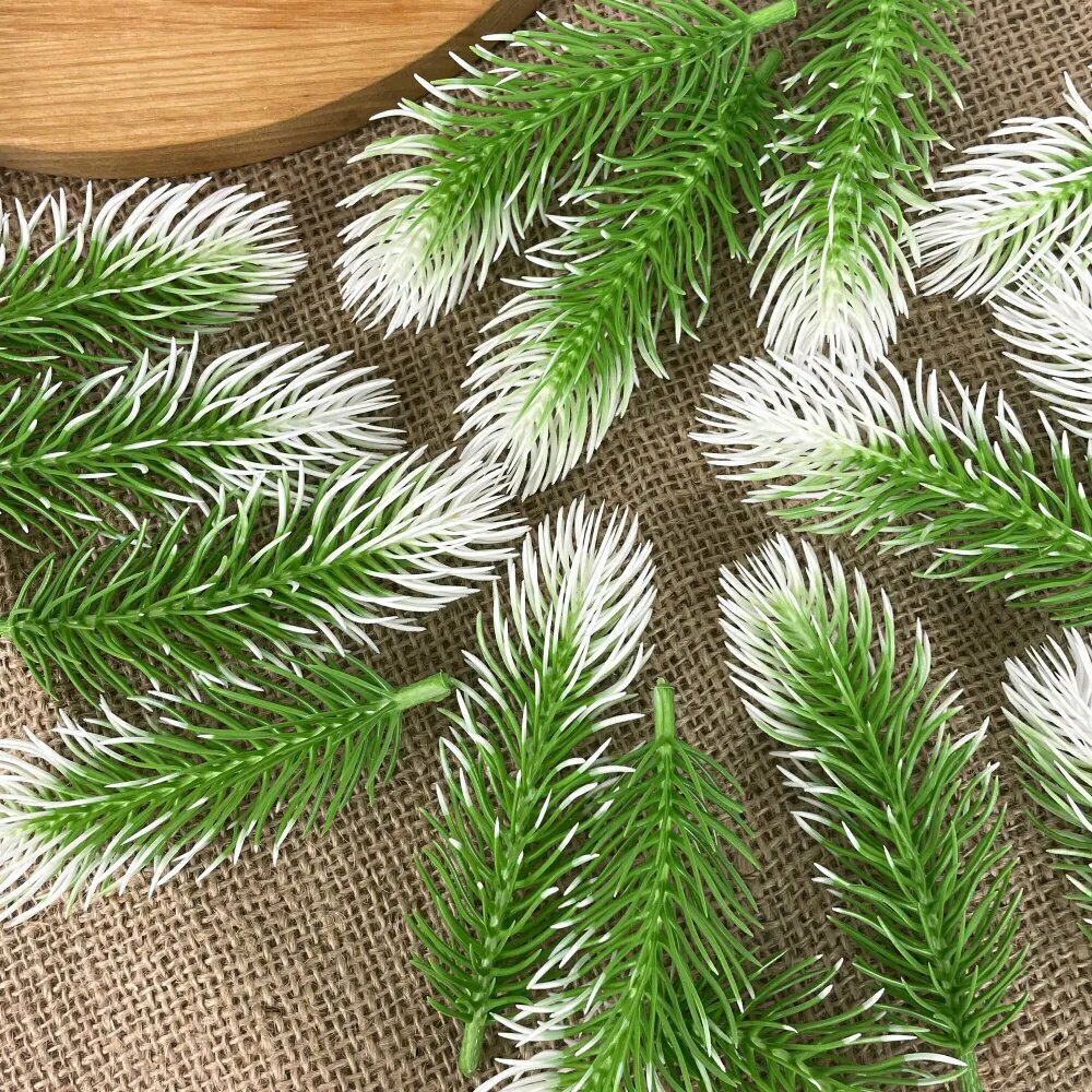 Еловые лапки искусственные, мини, ветки для декора, творчества, поделок, Бело-зеленые 6 см, 50 штук