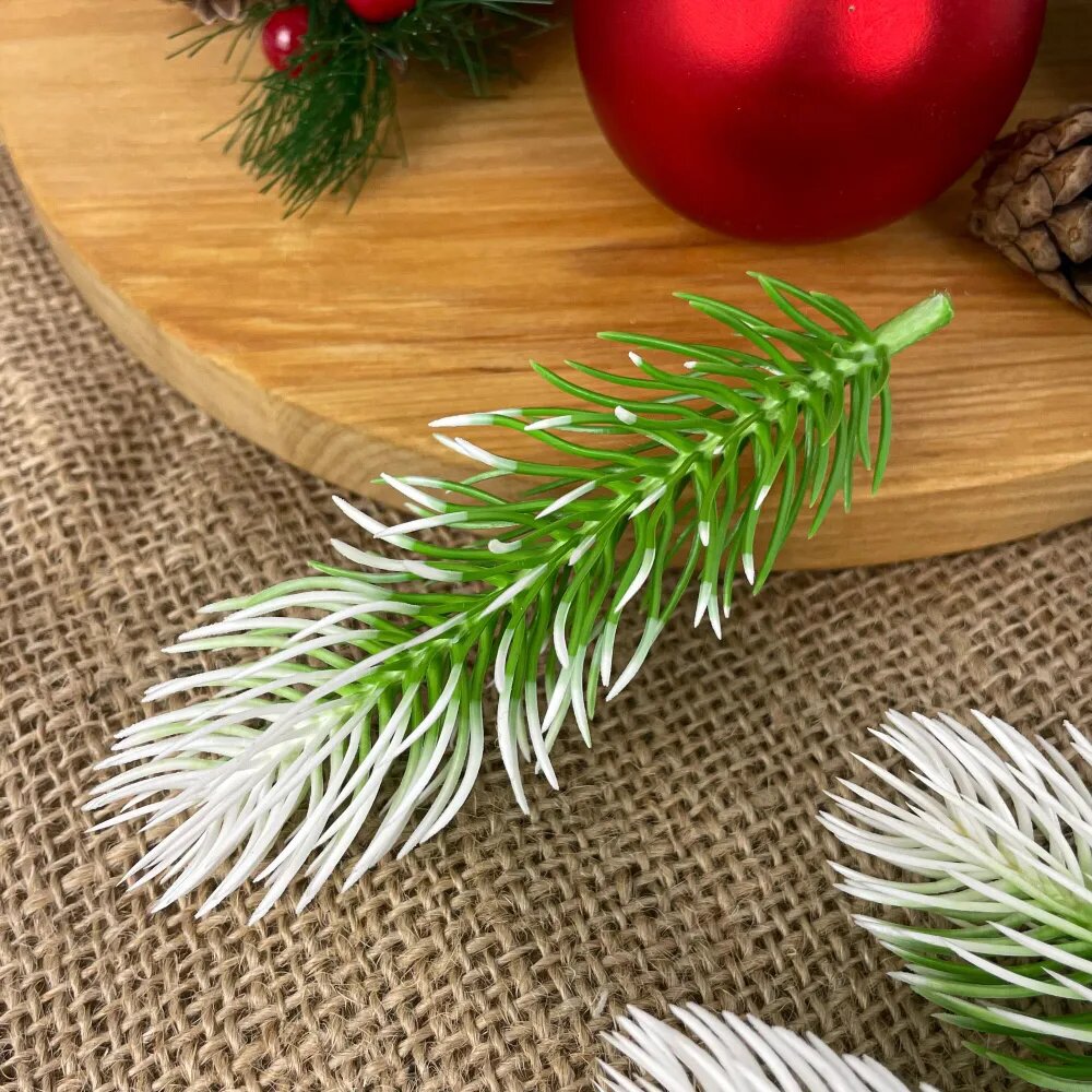 Еловая ветка, еловая лапка искусственная, Бело-зеленая, декор зимний 11 см, 20 штук
