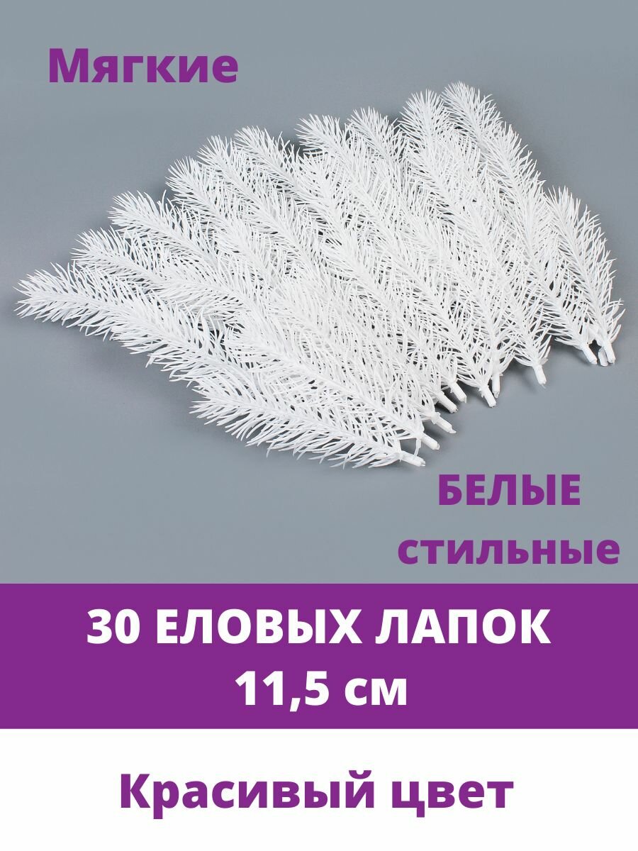 Купить Еловая лапка белая искусственная, 11,5-13,5 см, 30 штук