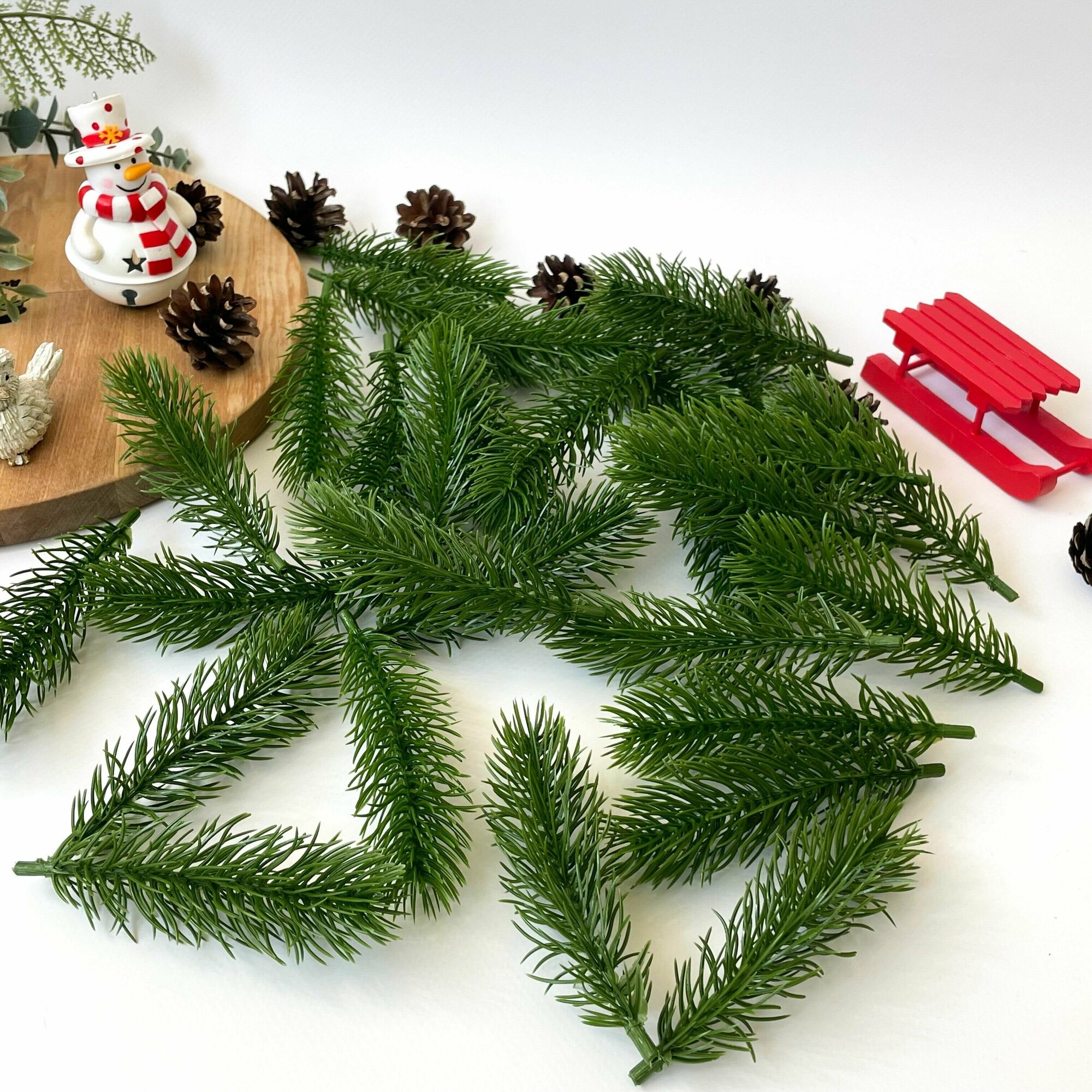 Купить Еловая ветка, еловая лапка искусственная, декор зимний 11 см, 50 штук