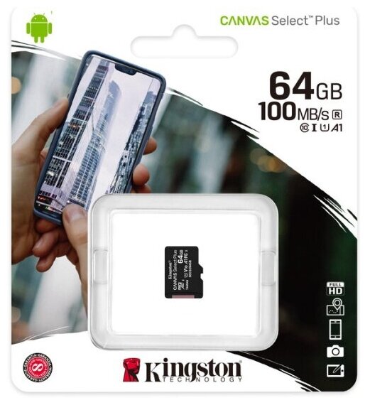 СохранитьКарта памяти MicroSD 64GB Kingston Class 10 Canvas Select Plus A1 (100 Mb/s) без адаптера интересное: