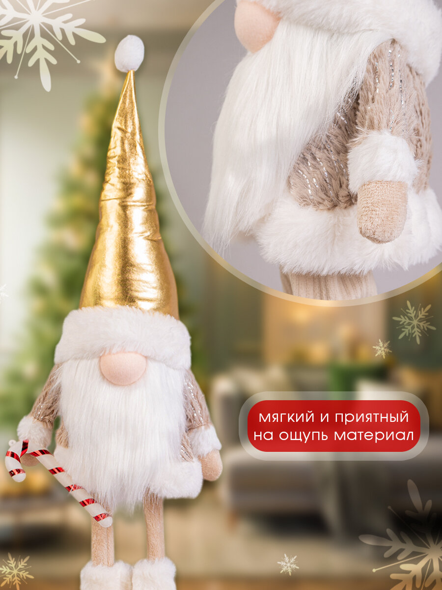 Новогодний Гном с колпачком под елку, золотой, на длинных ножках, 54 см интересное: