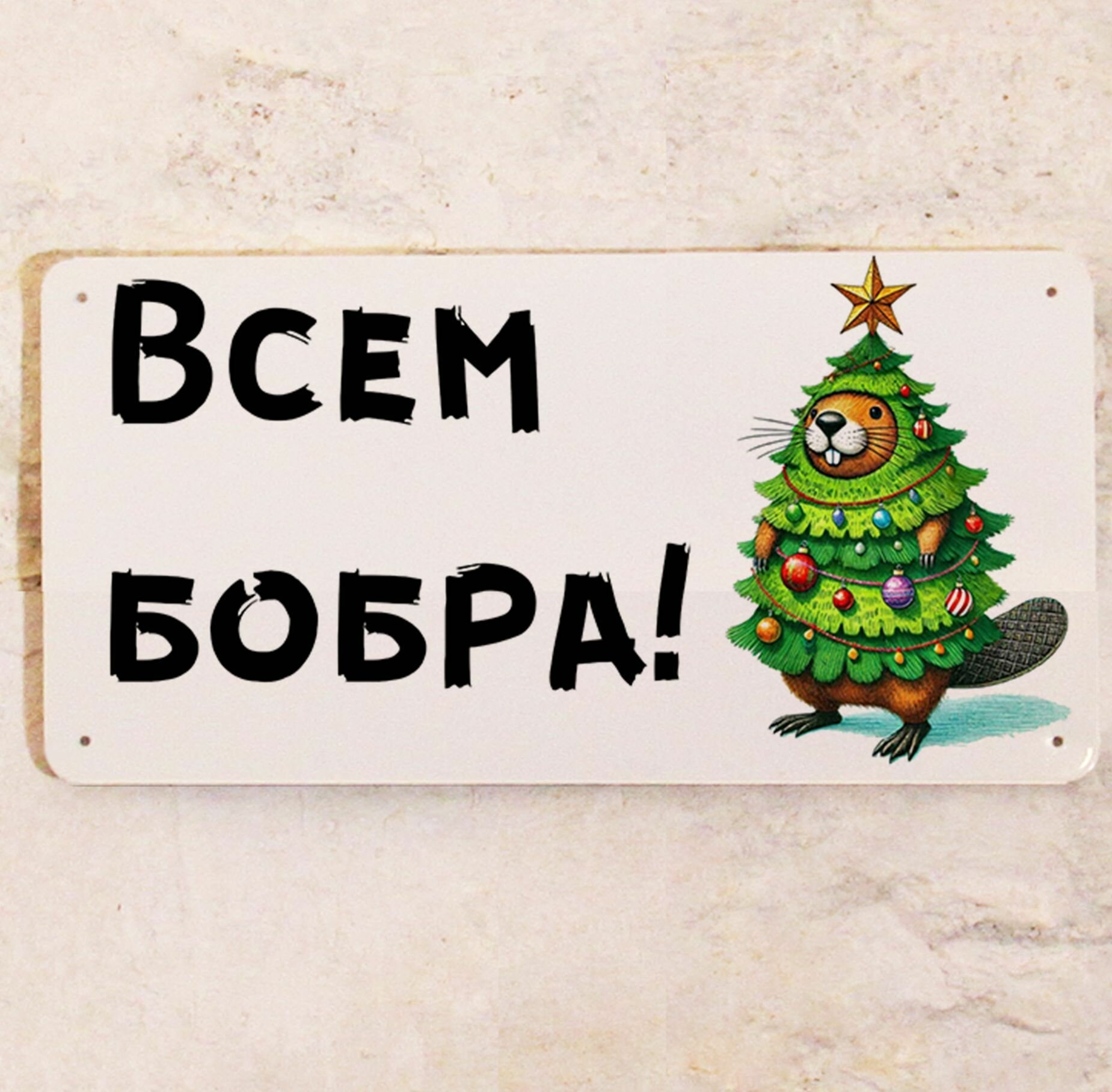 Купить Новогодний декор для дома на стену Всем бобра, металл, 15х30 см.
