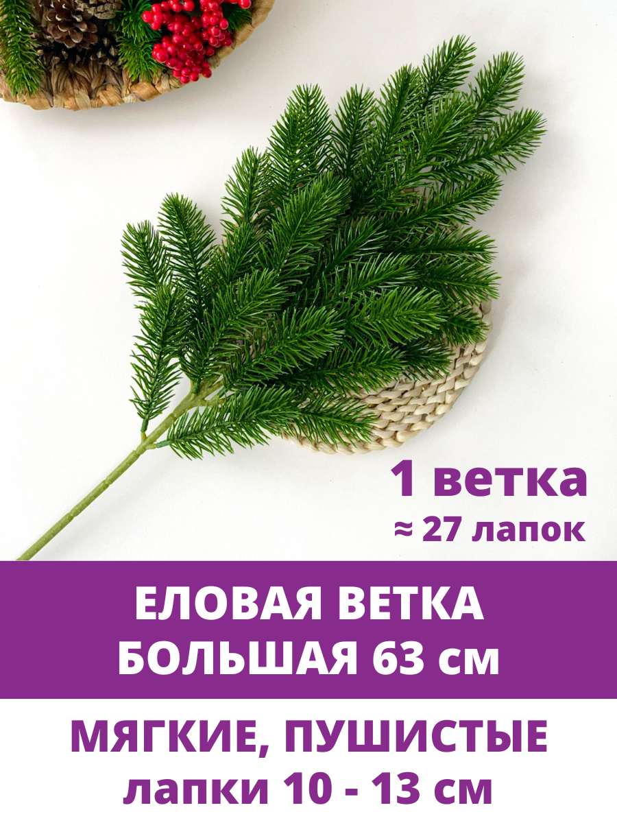 Еловая ветка, декор зимний, рождественский, 1 ветка, 27 лапок, 64 см интересное:
