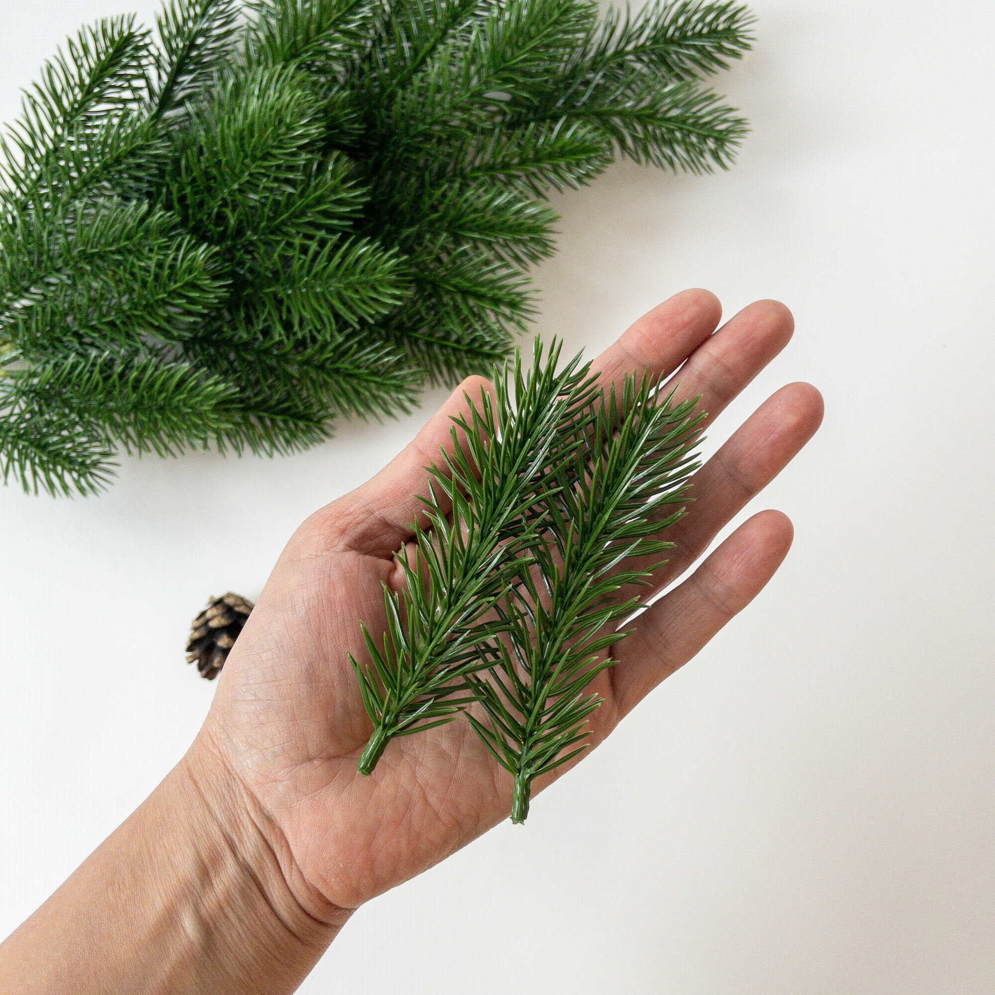 Букет Хвойный искусственный, еловые ветки для декора, Белые, набор 2 ветки, 35 см