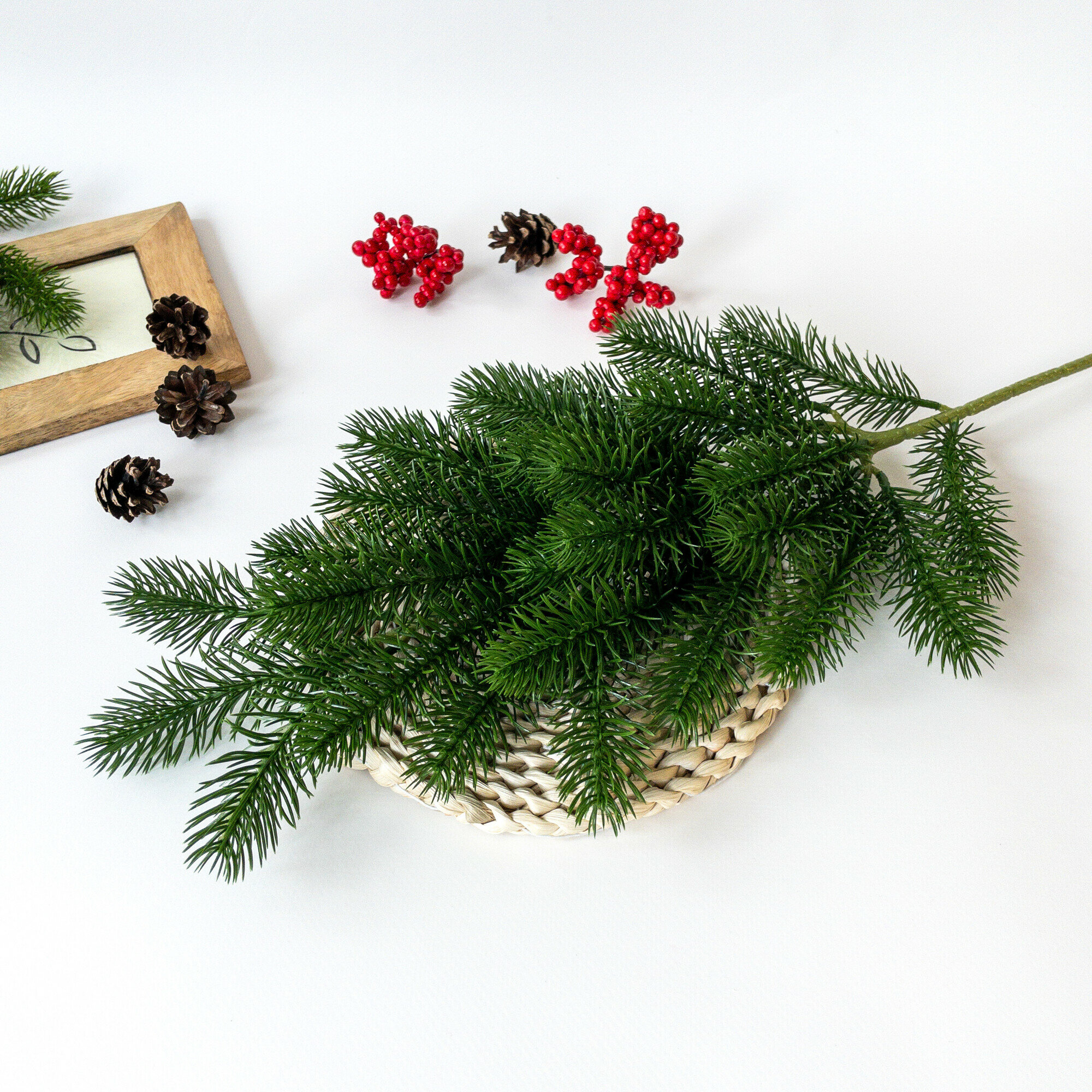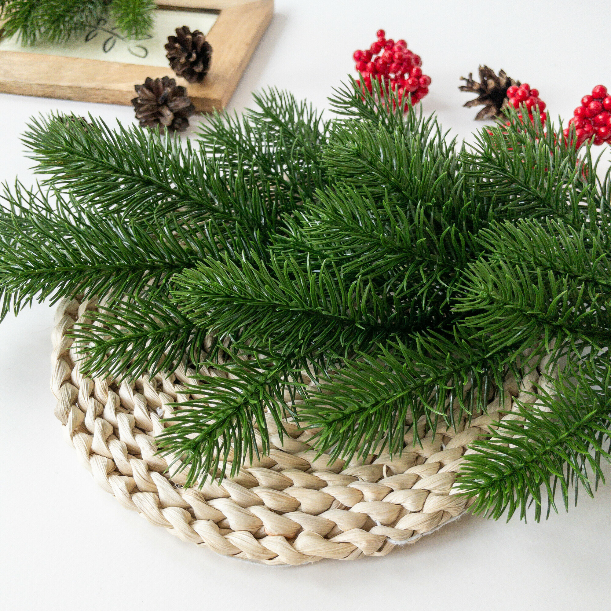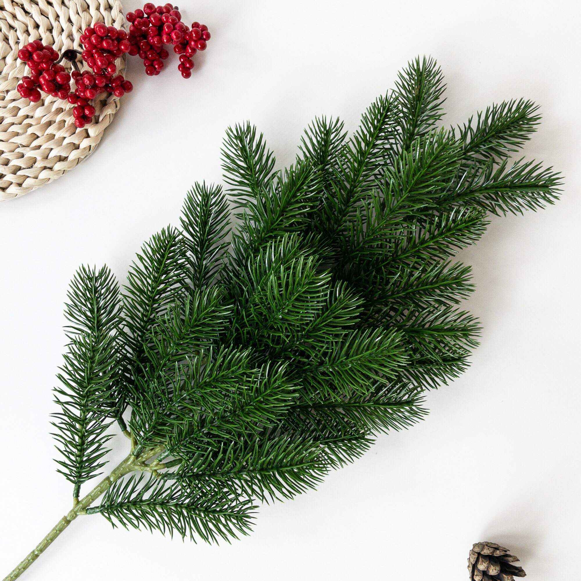 Купить Еловая ветка, декор зимний, рождественский, 1 ветка, 27 лапок, 64 см