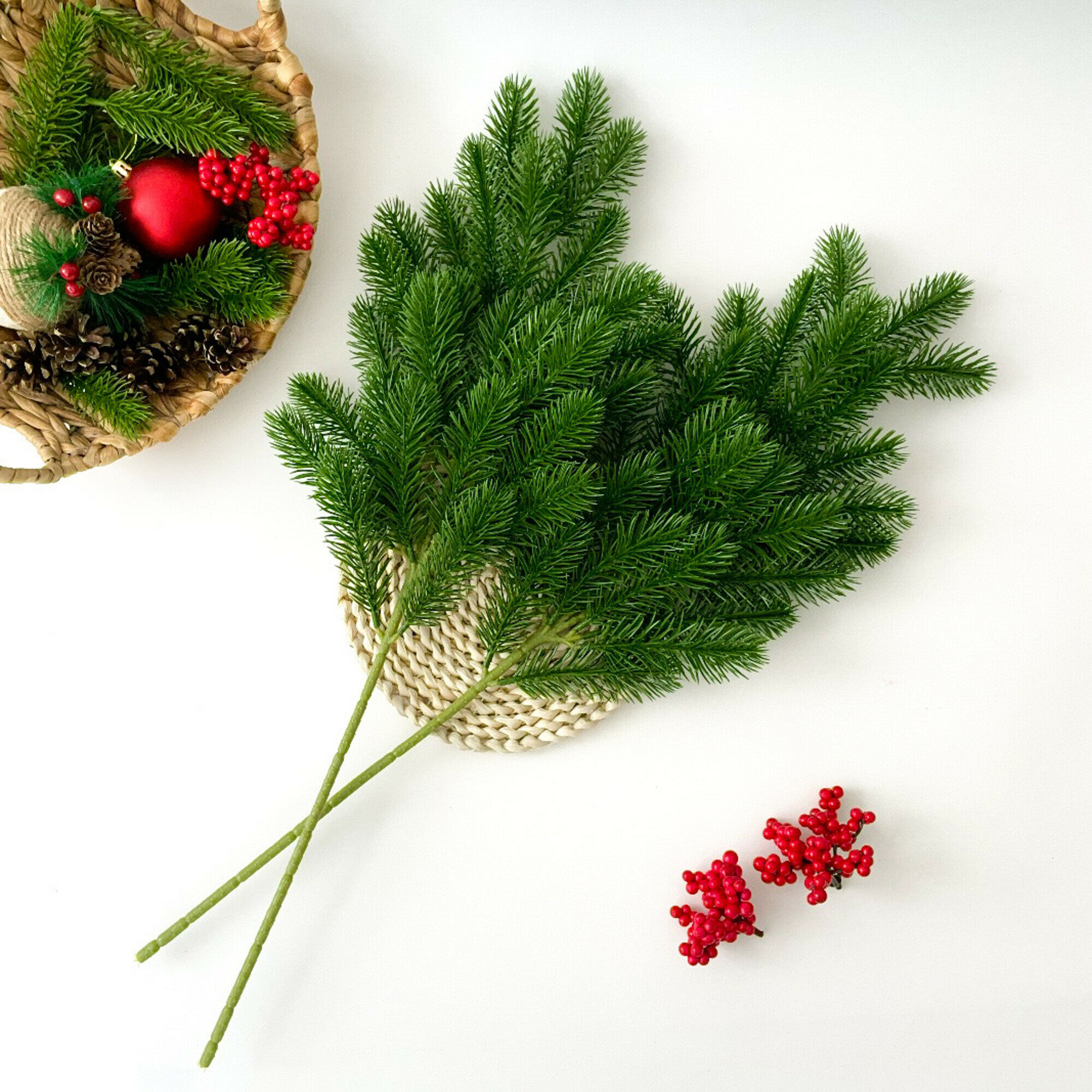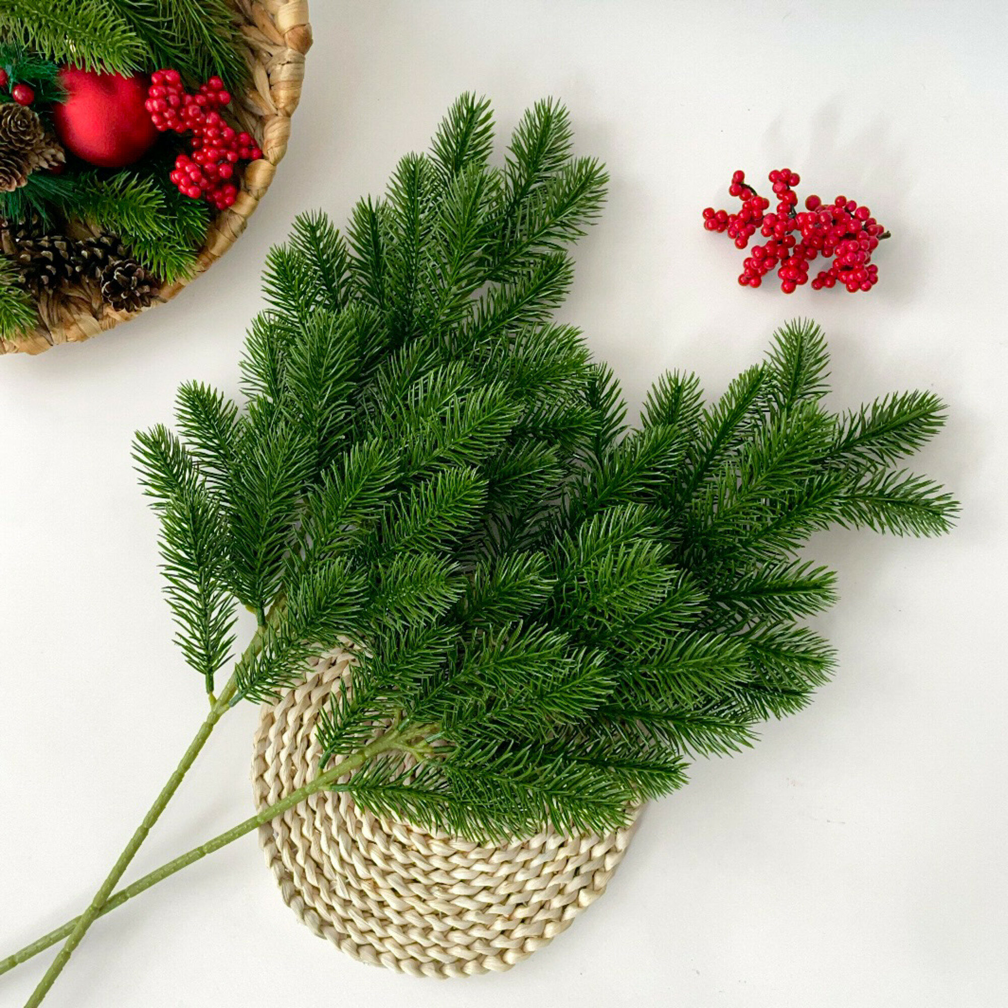 Еловая ветка, декор зимний, рождественский, 2 ветки, 27 лапок, 63 см интересное:
