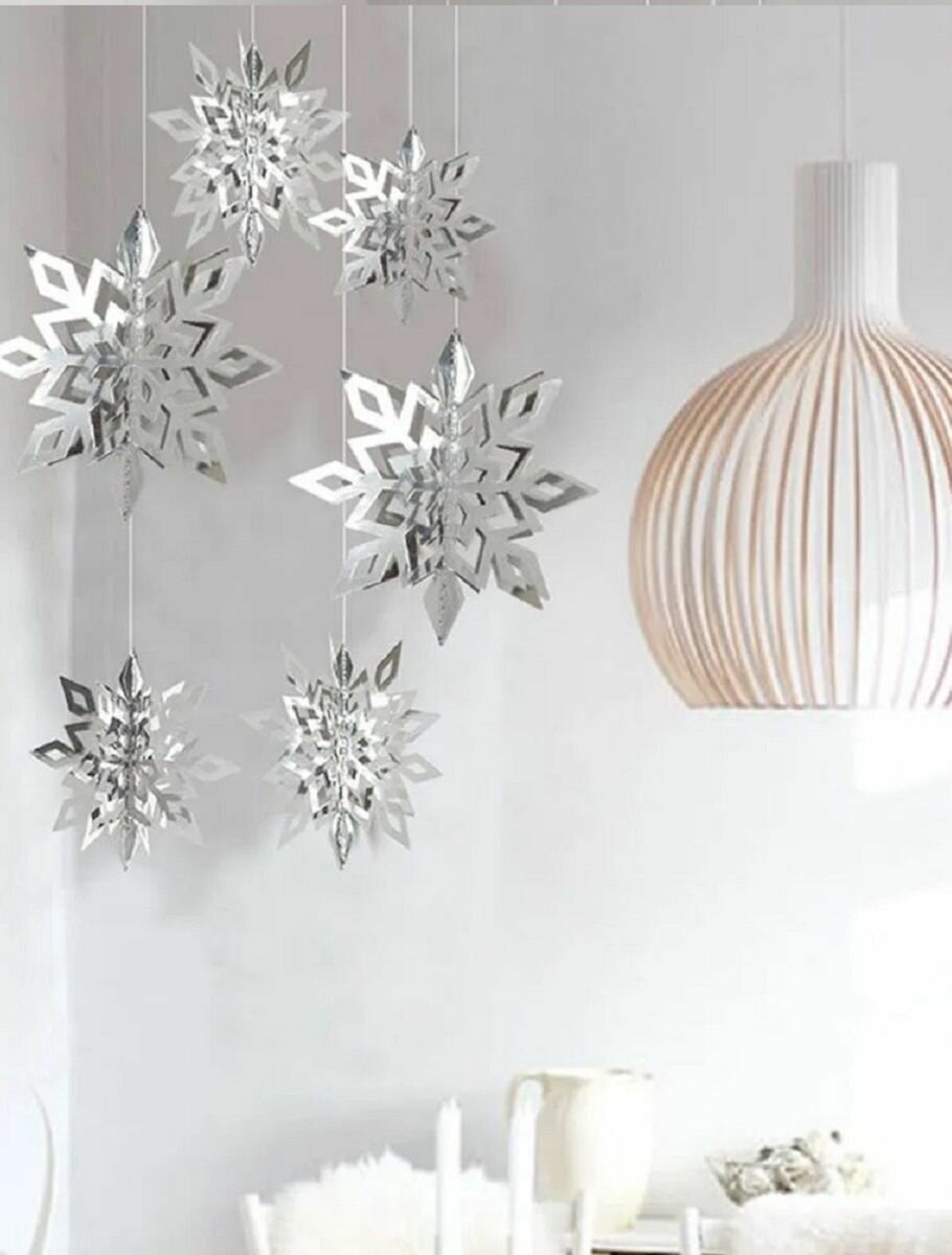 3D бумажные гирлянды подвески В виде снежинок большая серебро