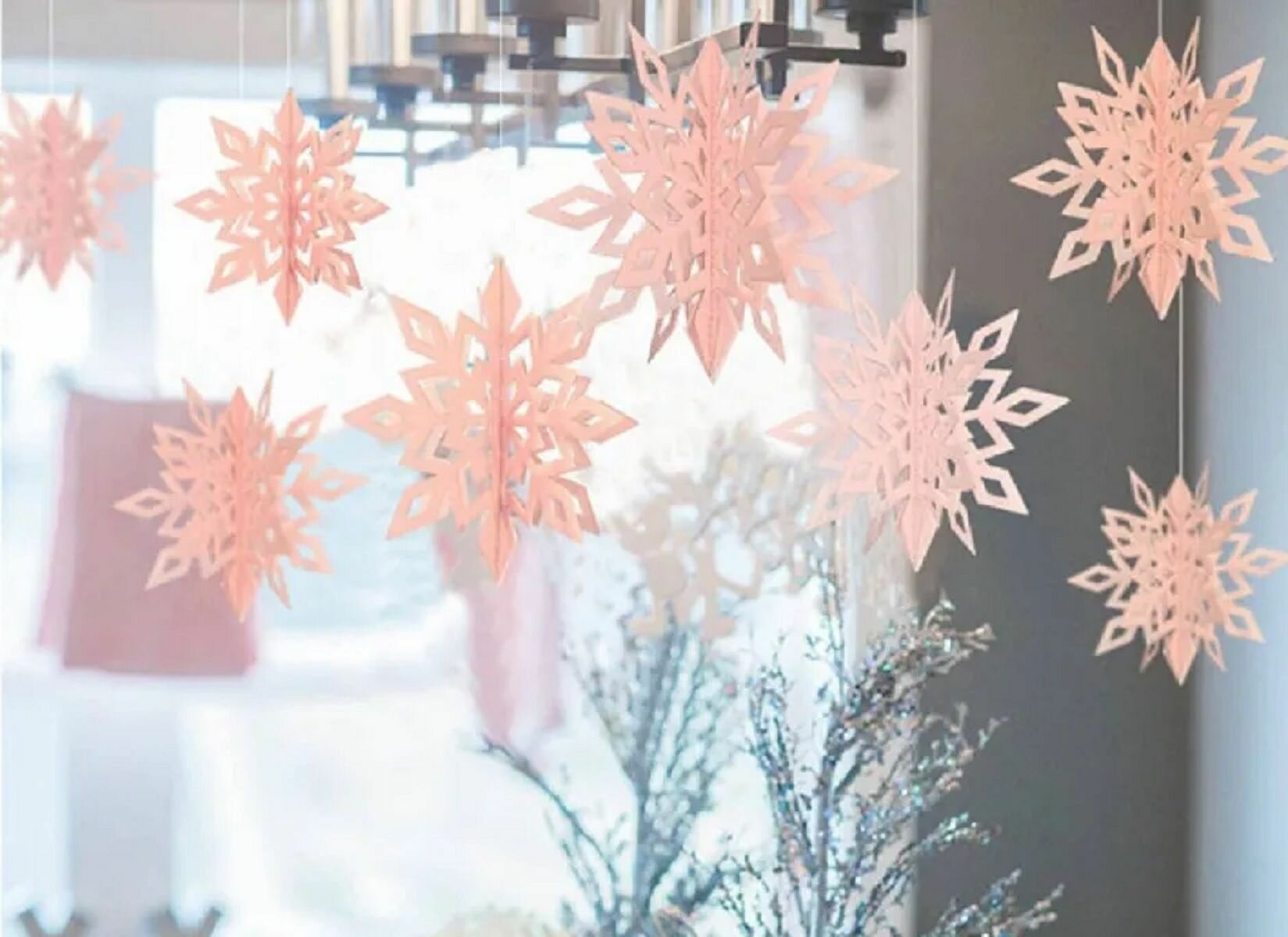 Купить 3D Бумажные гирлянды подвески 24 Снежинки большие 4 цвета
