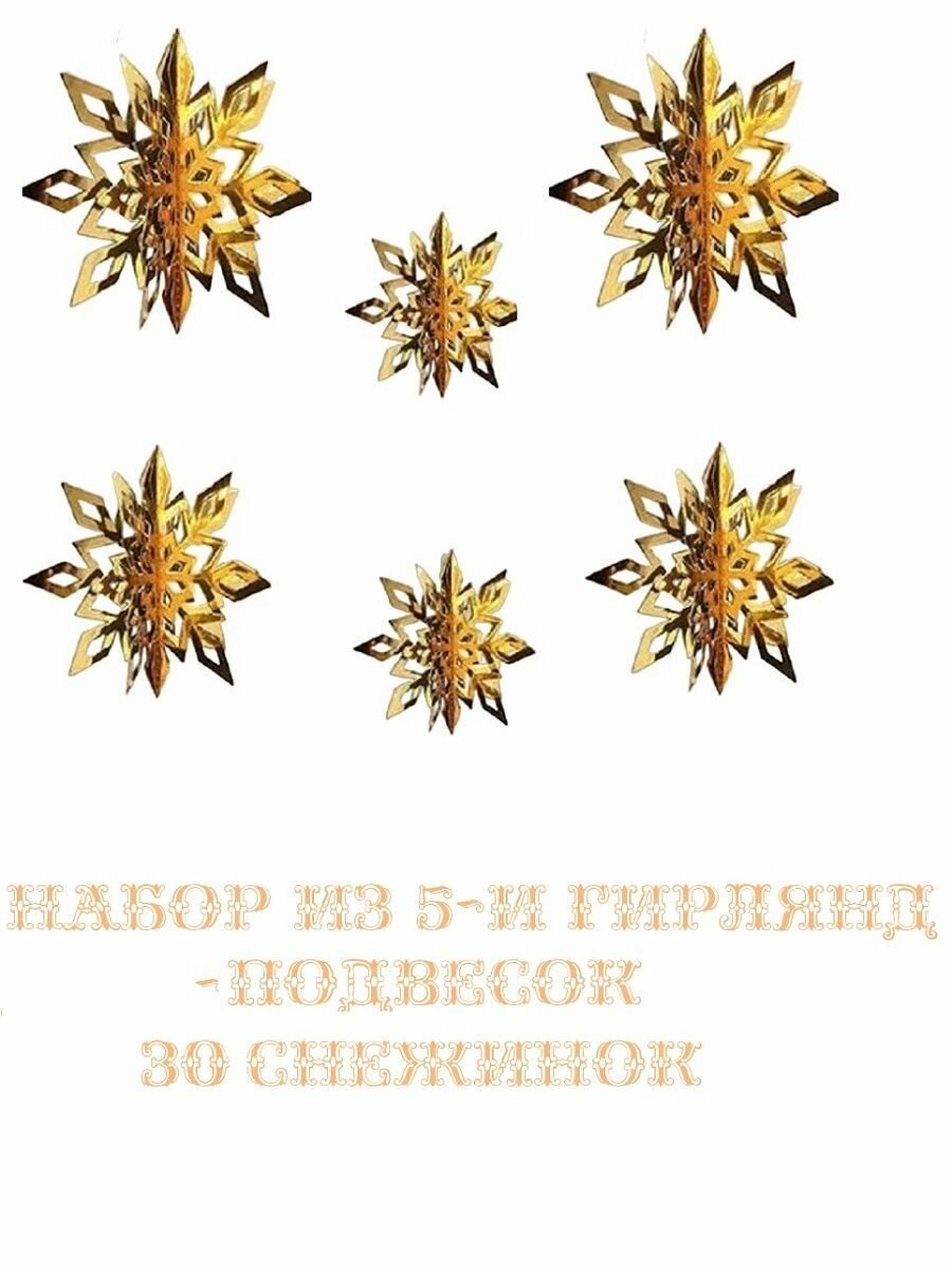Купить 3D Бумажные гирлянды подвески 30 Снежинок больших цвет золотой
