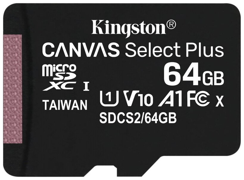 Карта памяти microSDXC UHS-I Kingston Canvas Select Plus 64 ГБ, 100X, Class 10, SDCS2/64GBSP, 1 шт., без адаптера