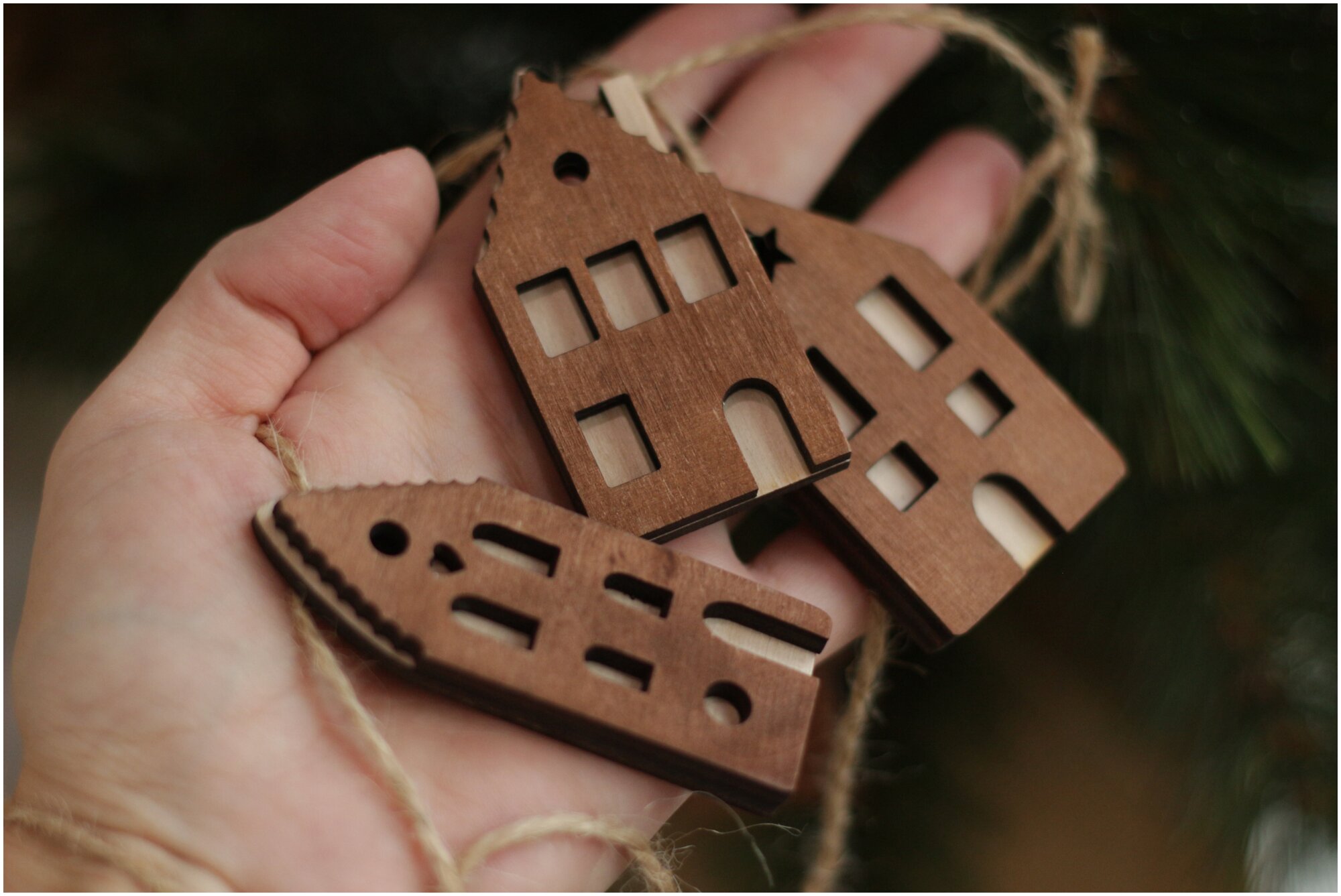 Новогодняя Гирлянда Домики коричневые, украшение на елку домики интересное: