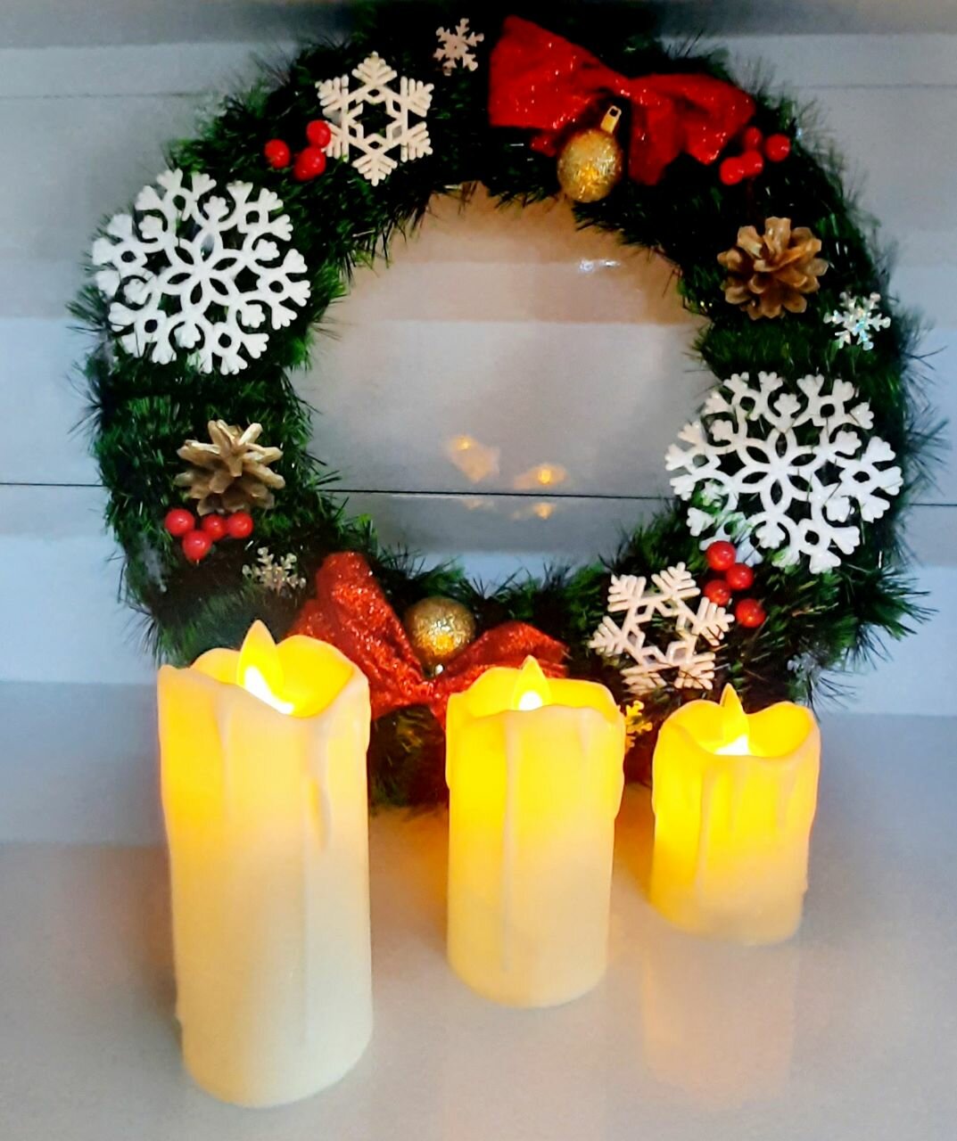 Набор светодиодных свечей, пластик, имитация воска, для дома и улицы, от батареек, LR41, 3шт