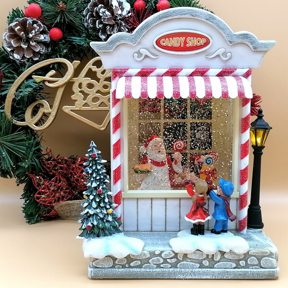 Купить Новогодний светильник "Кэнди шоп" с метелью и встроенными мелодиями