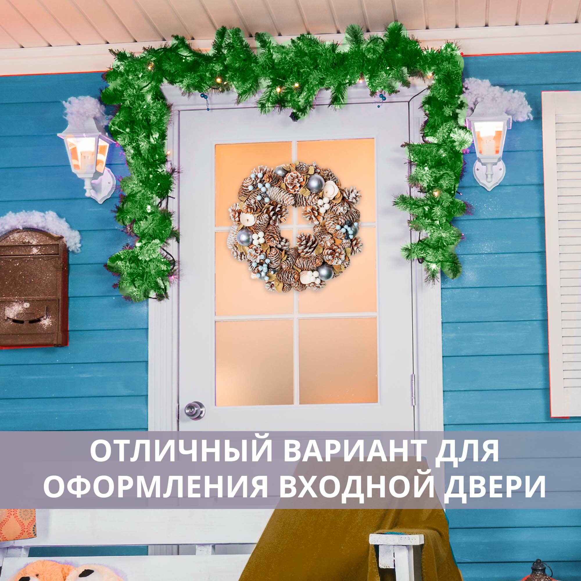 Рождественский венок новогодний на дверь и декор на стол с шишками и шариками, с еловыми веточками