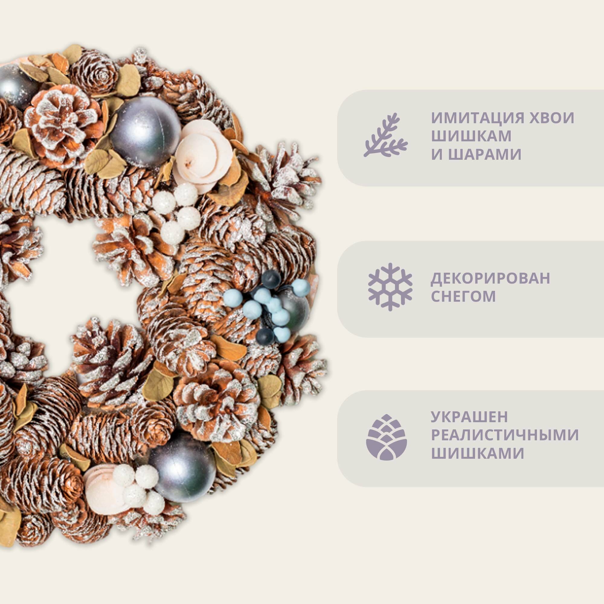 Купить Рождественский венок новогодний на дверь и декор на стол с шишками и шариками