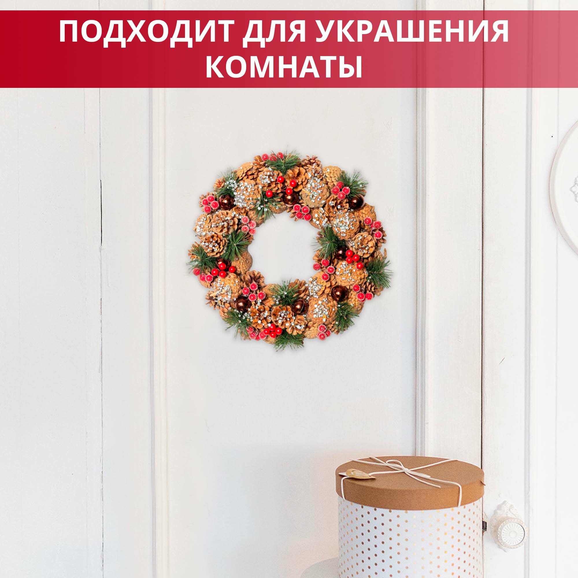 Купить Рождественский венок новогодний на дверь и декор на стол с шишками и шариками, с еловыми веточками