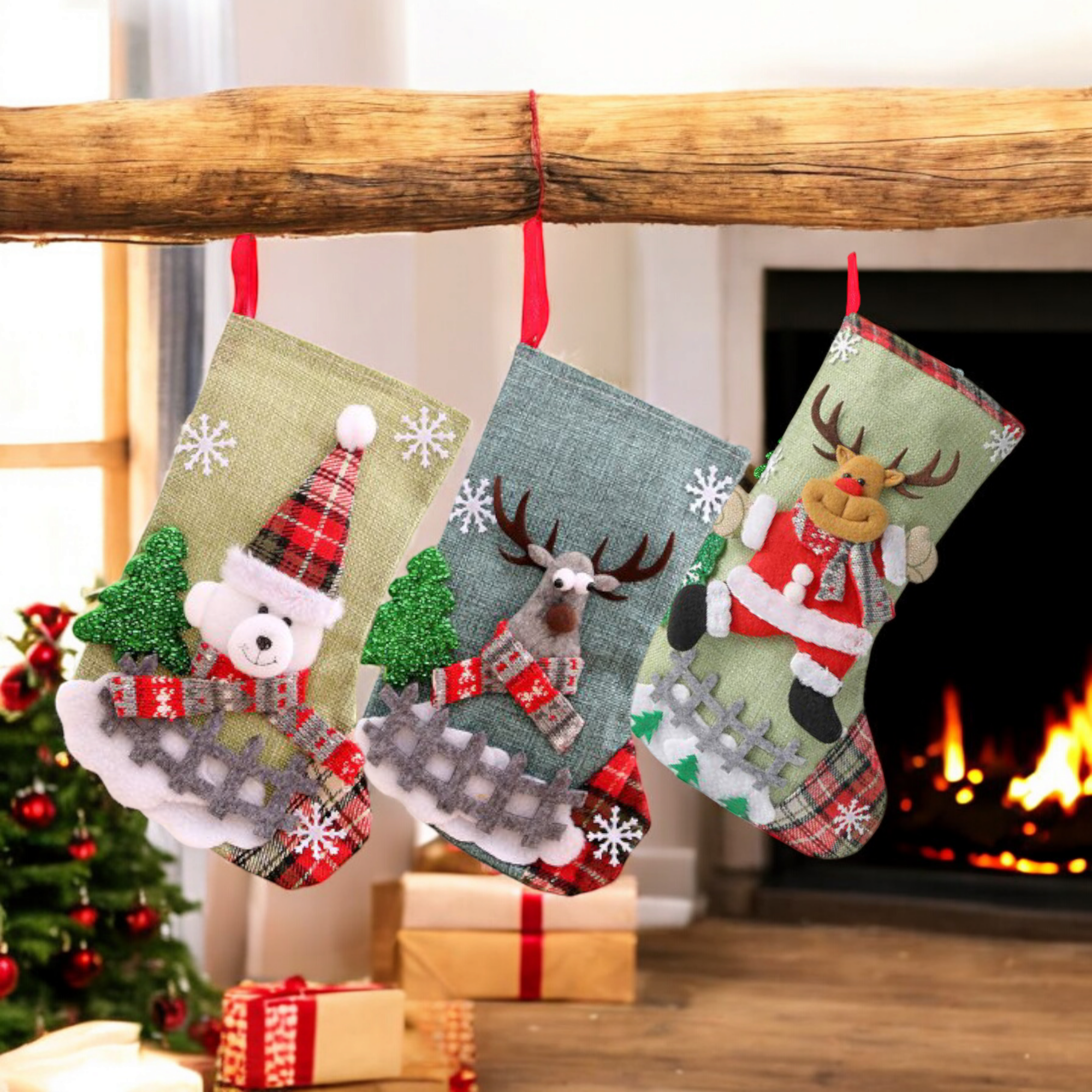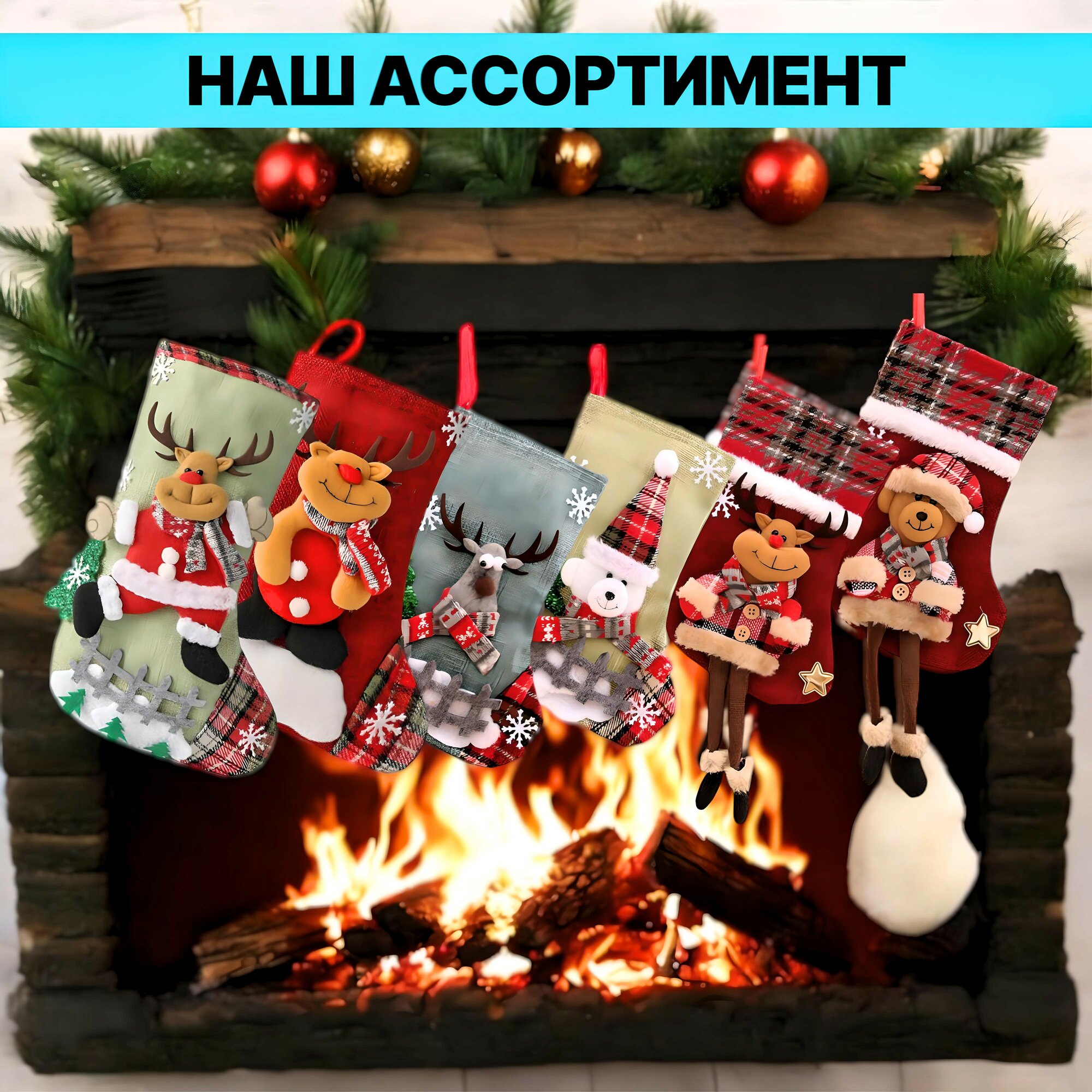 Купить Носок для подарков с изображением "Олень" и рождественским узором для елки, камина и декора, 31см