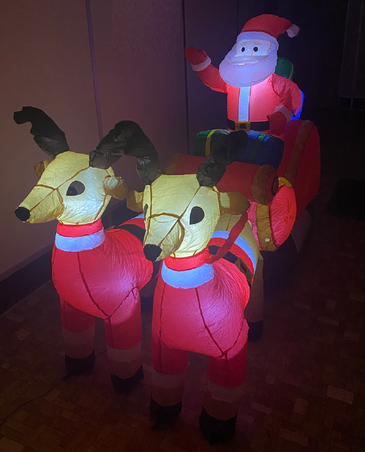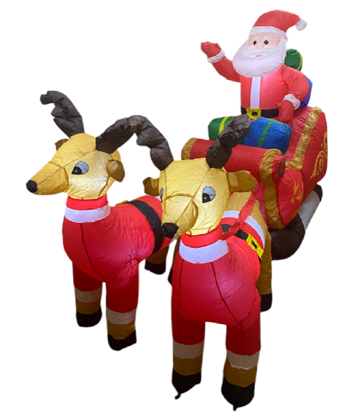 Купить Фигура надувная Новогодняя Упряжка с оленями 240 см, Led подсветка, уличная 3d