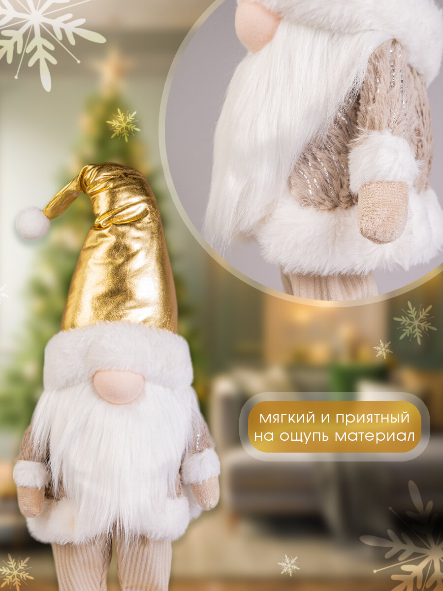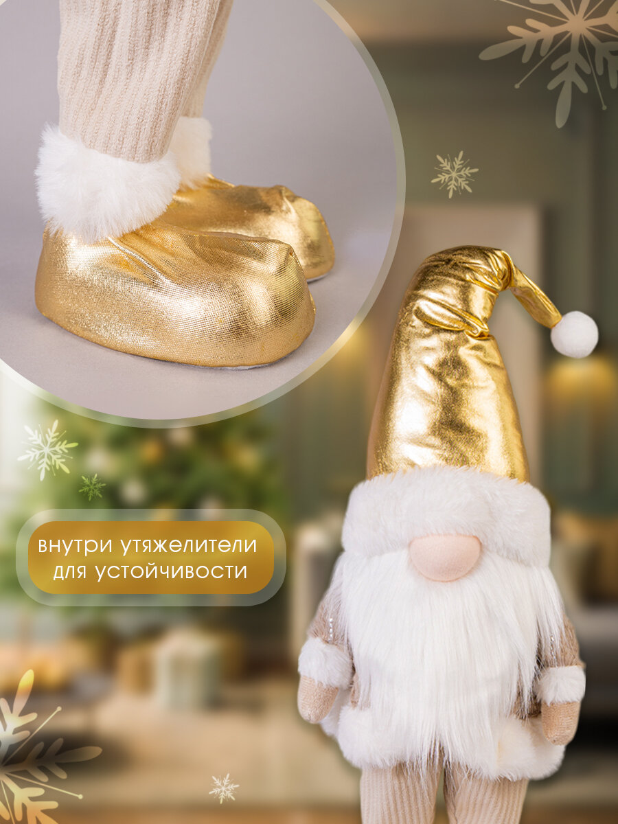 Новогодний Гном под елку с колпаком, золотой, 54 см интересное: