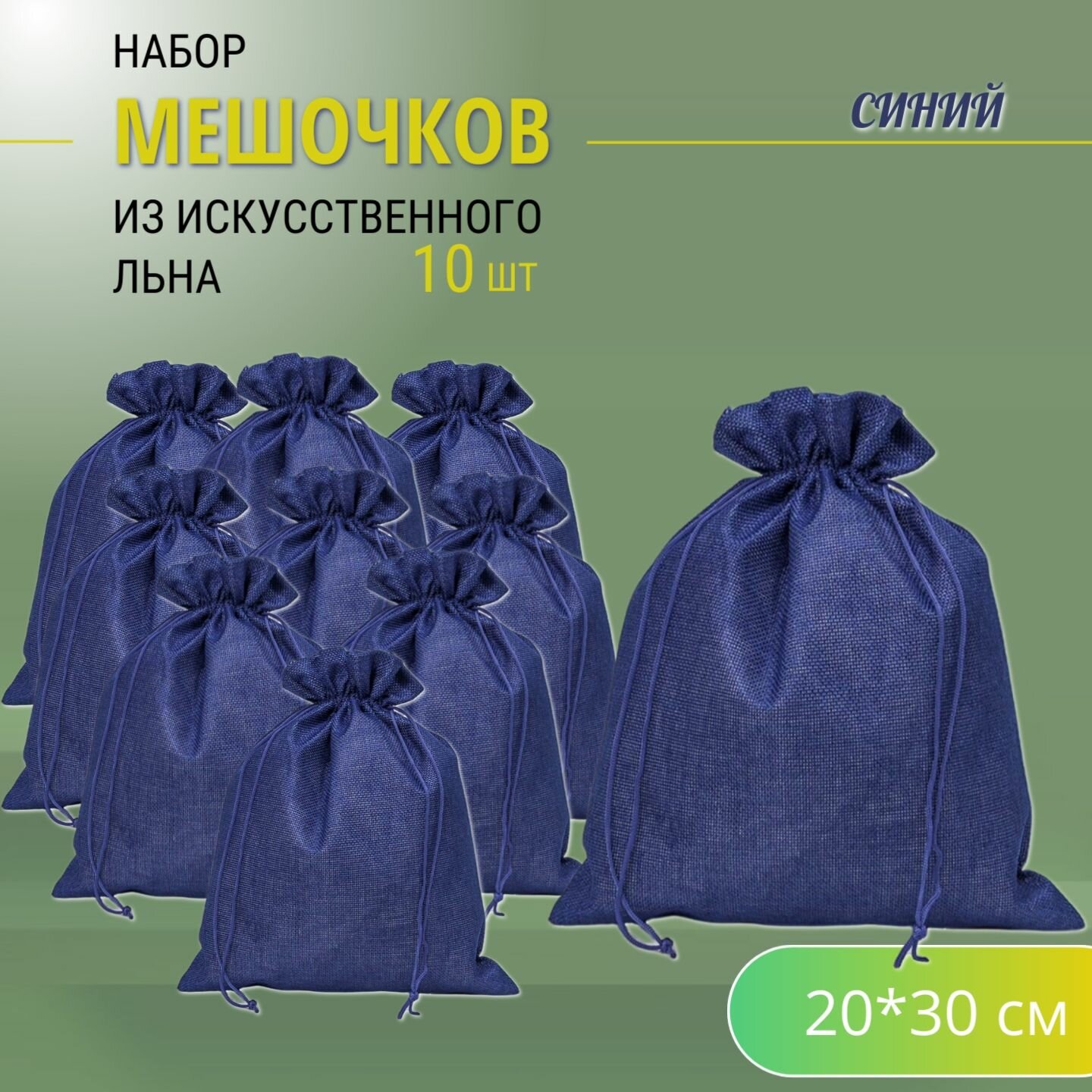 Купить Подарочные мешочки льняные (иск.) 20х30 см (10 шт.) / мешочки для хранения - Синие