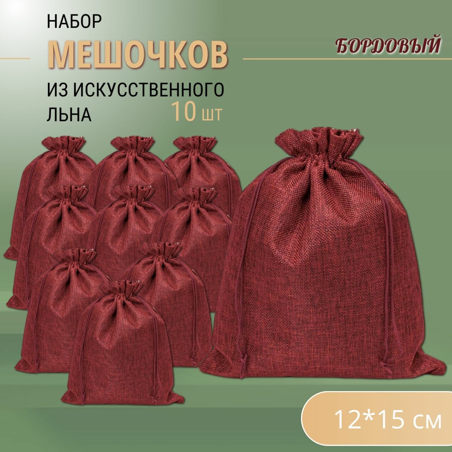 Купить Подарочные мешочки льняные (иск.) 12х15 см (10 шт.) / мешочки для хранения - Бордовые