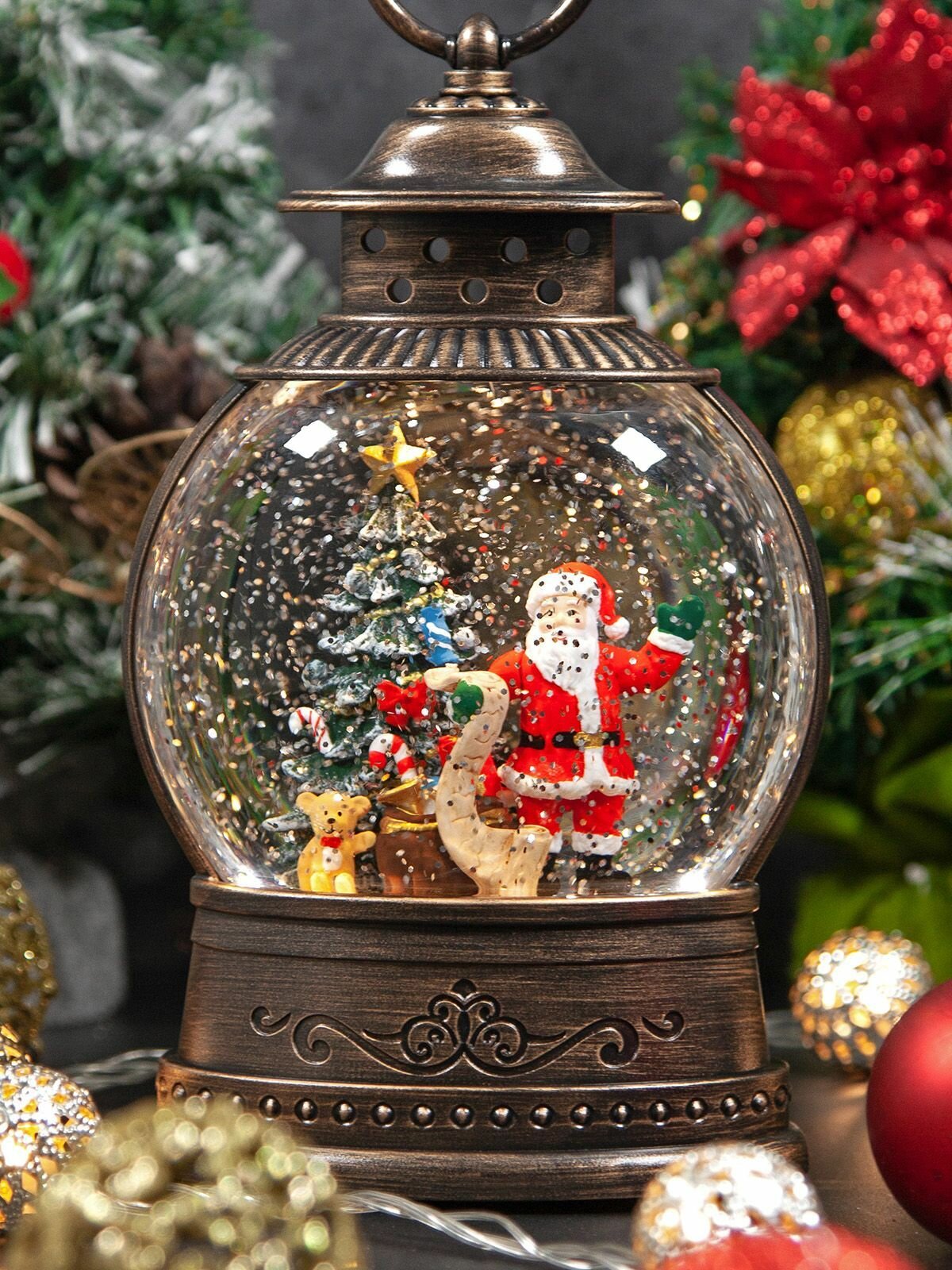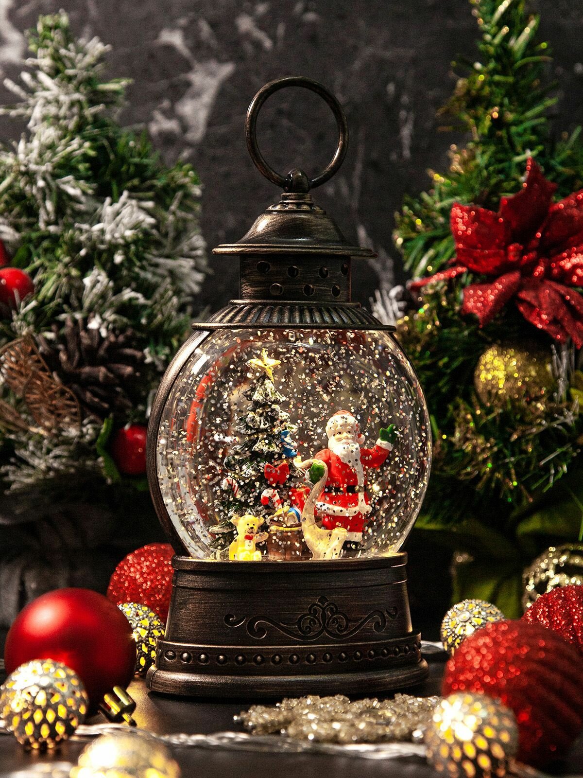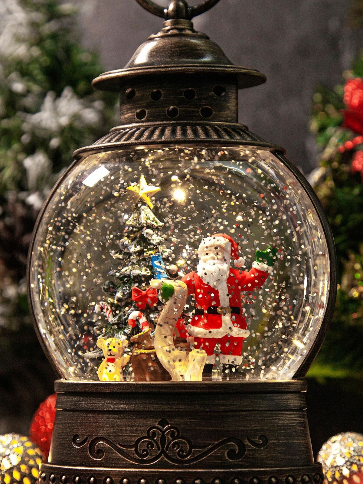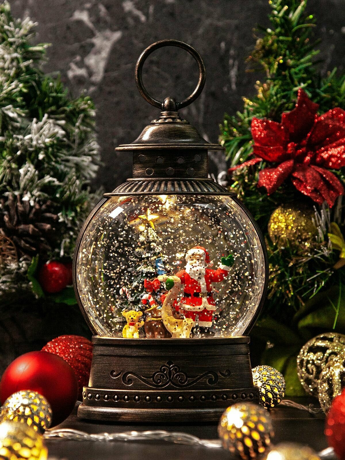 Купить Новогодний фонарь и светильник "Новогодние чудеса с Дедом морозом" с метелью и музыкой