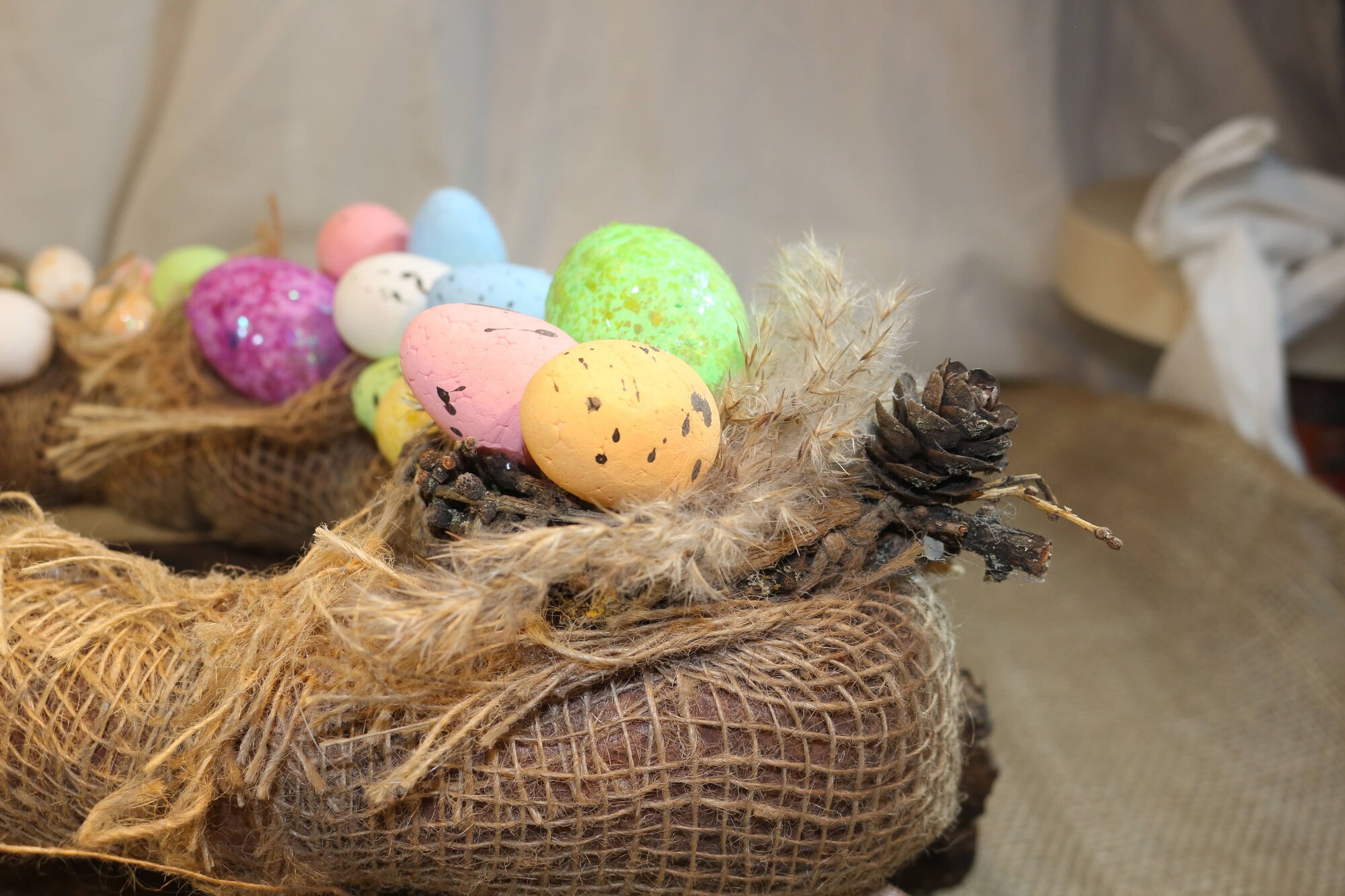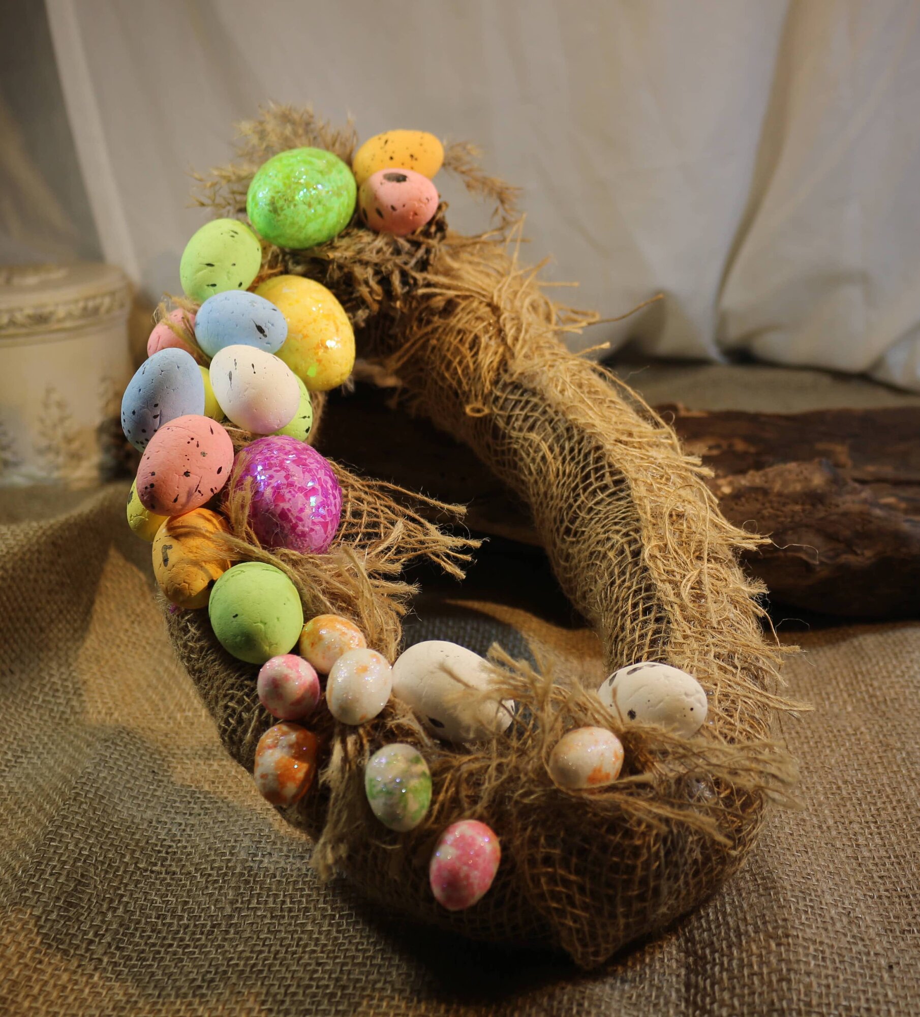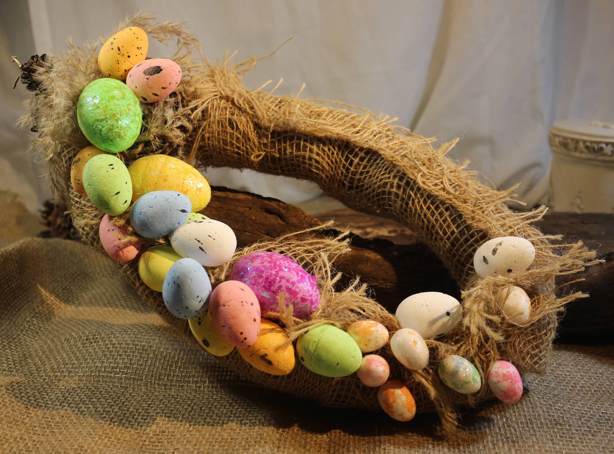 Венок пасхальный "Пасхальные яйца", ручная работа, настенный, интересное: