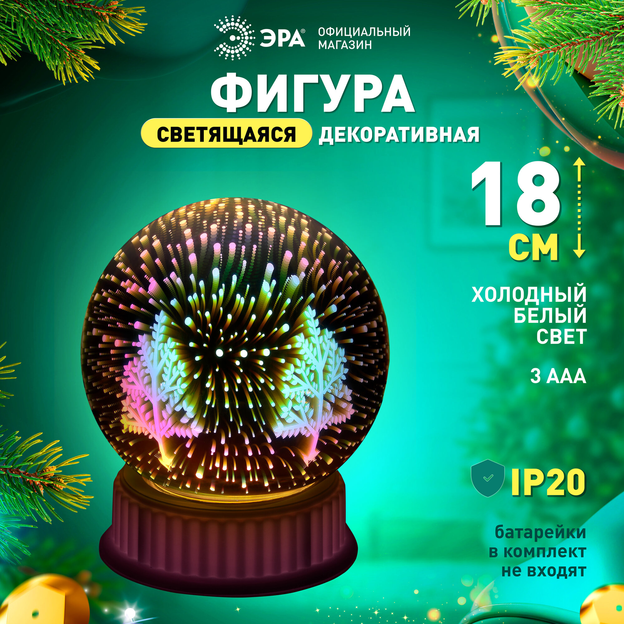 СохранитьДекоративный новогодний светильник Шар Новогодний лес Эра ENGDS-14 / декор для дома 3хААА, IP20 интересное:
