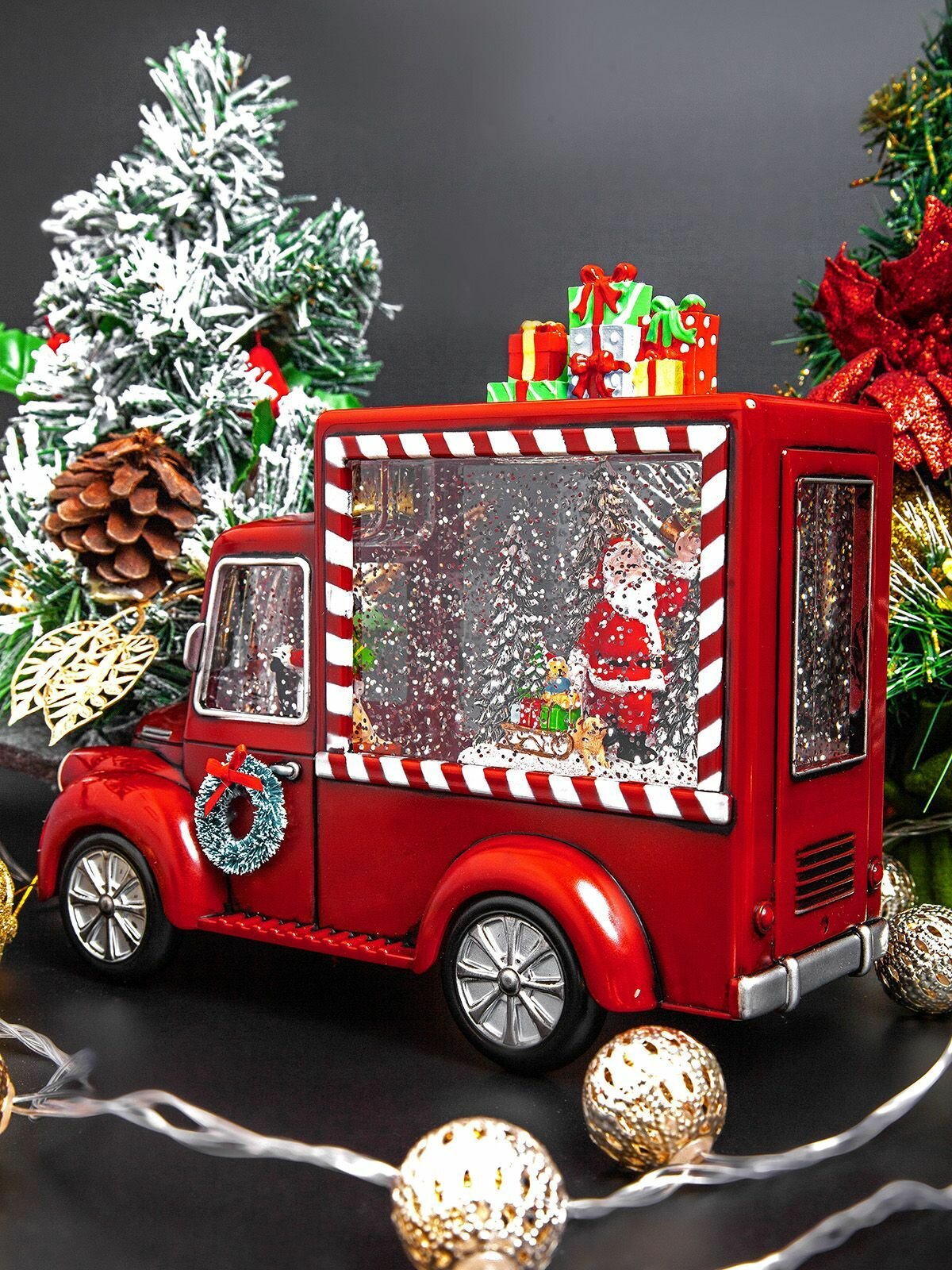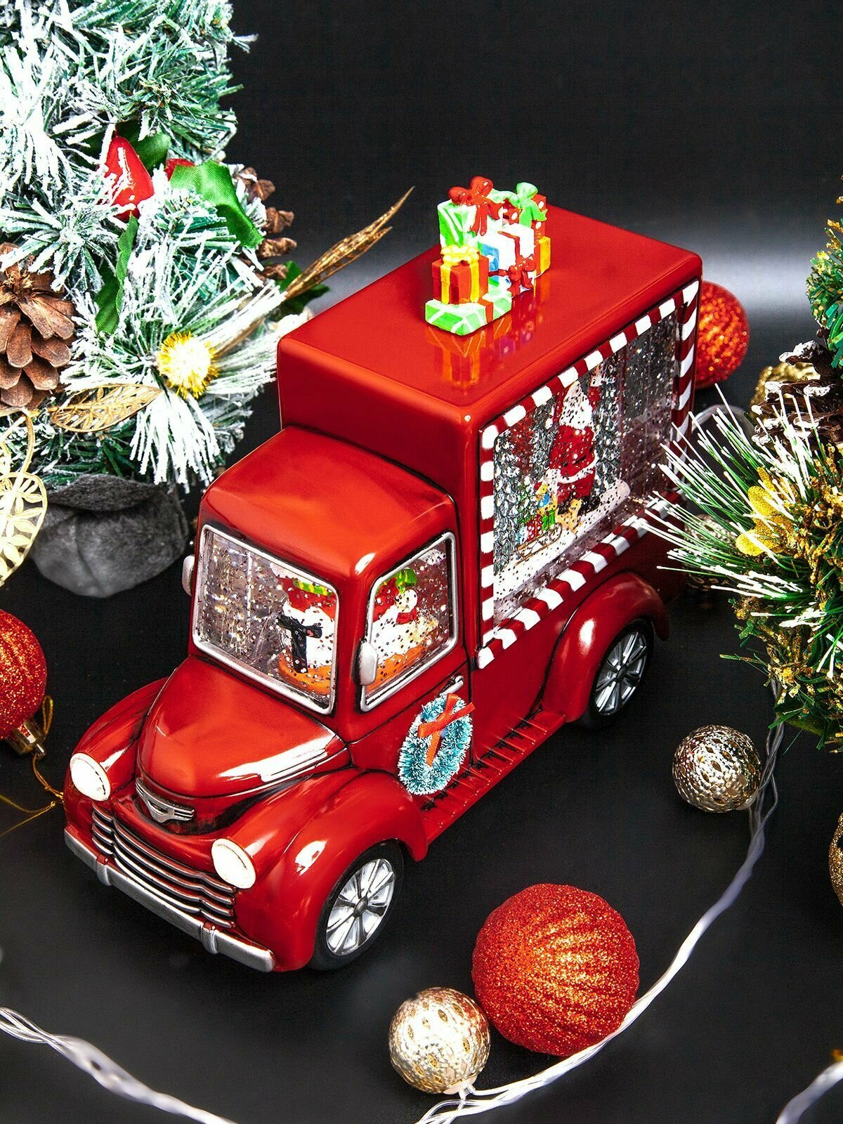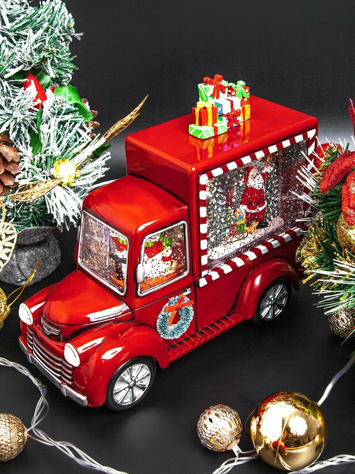 Купить Новогодний светильник и фонарь "Автомобиль подарков" с метелью и встроенными мелодиями