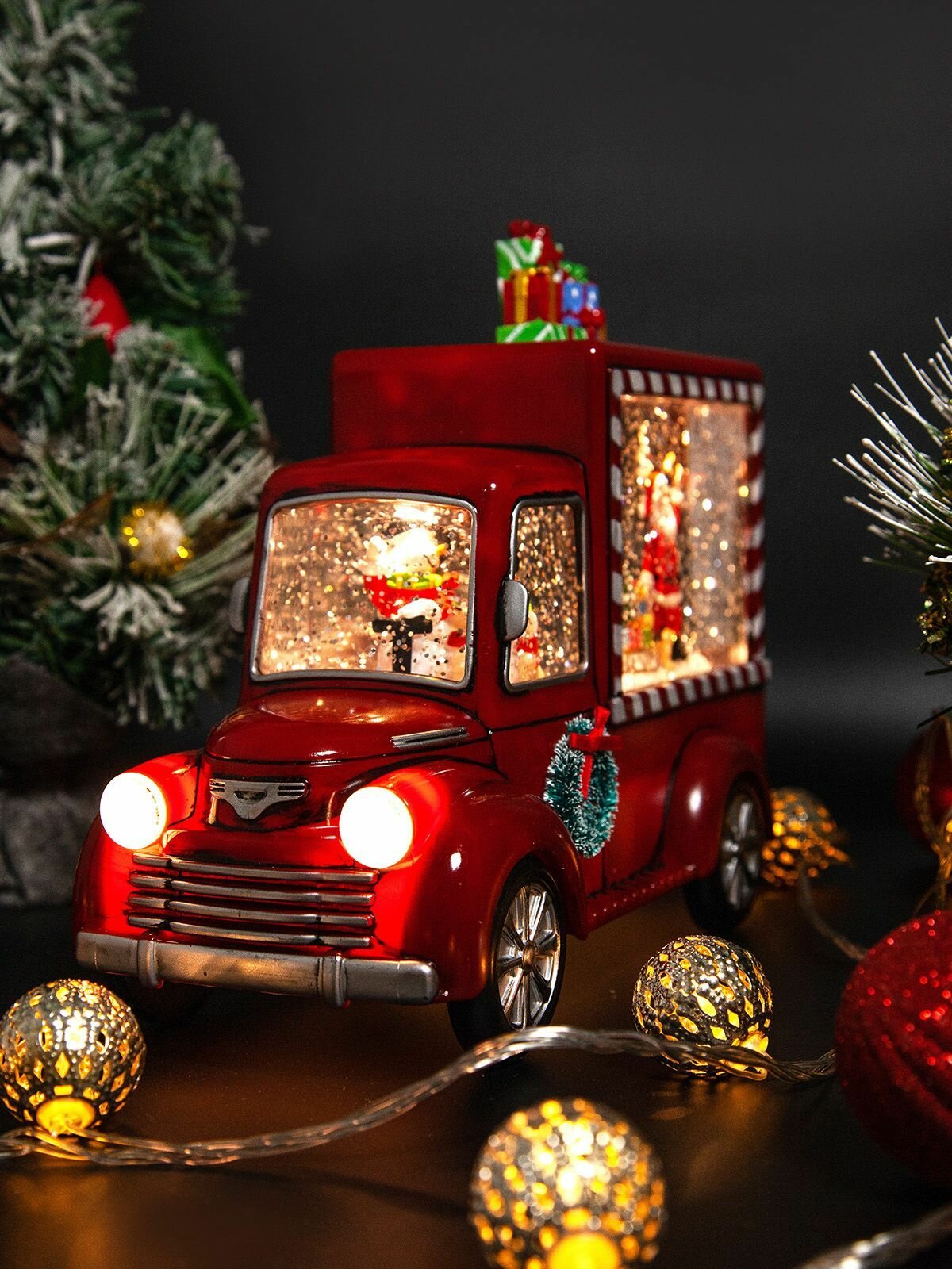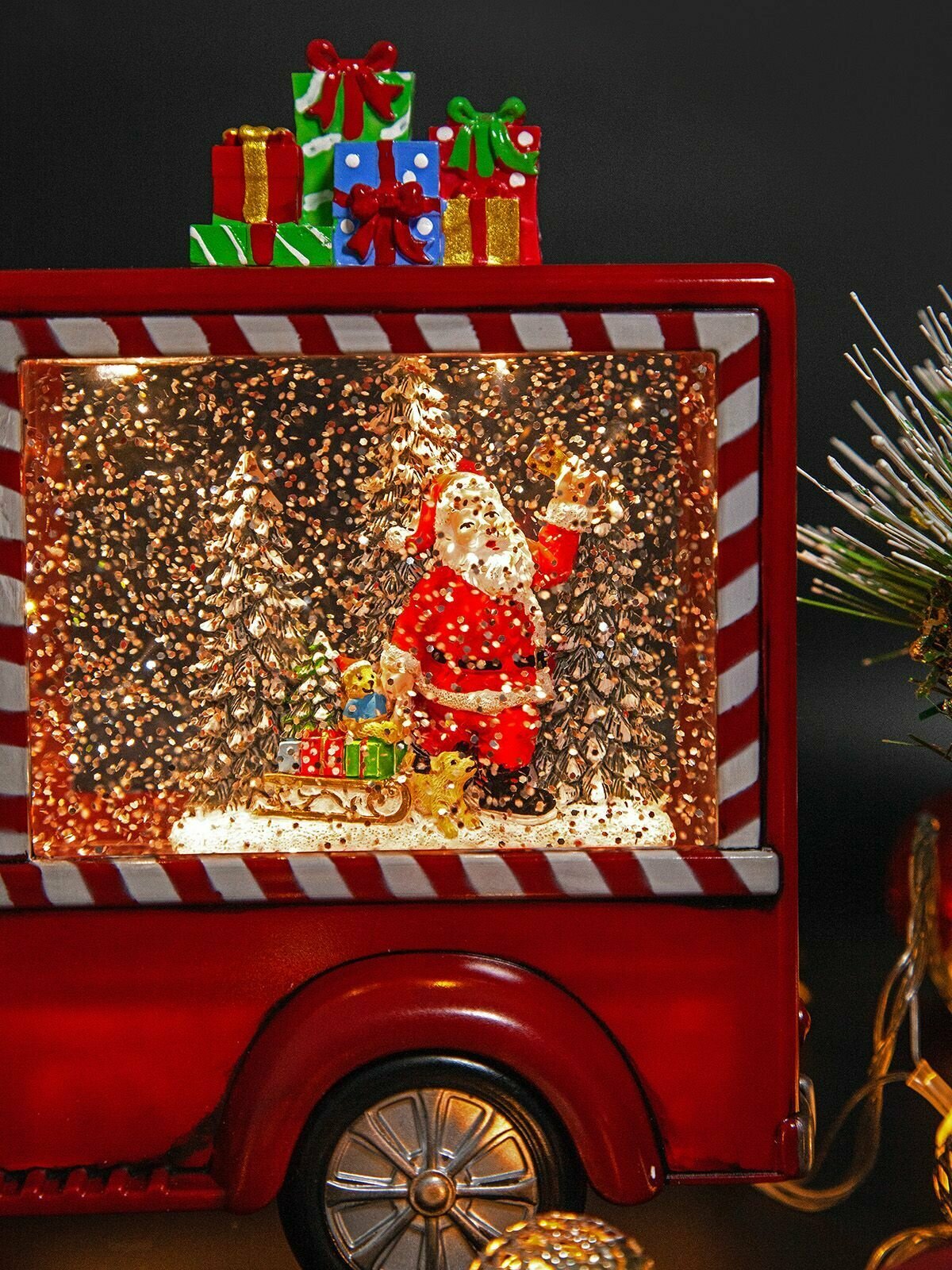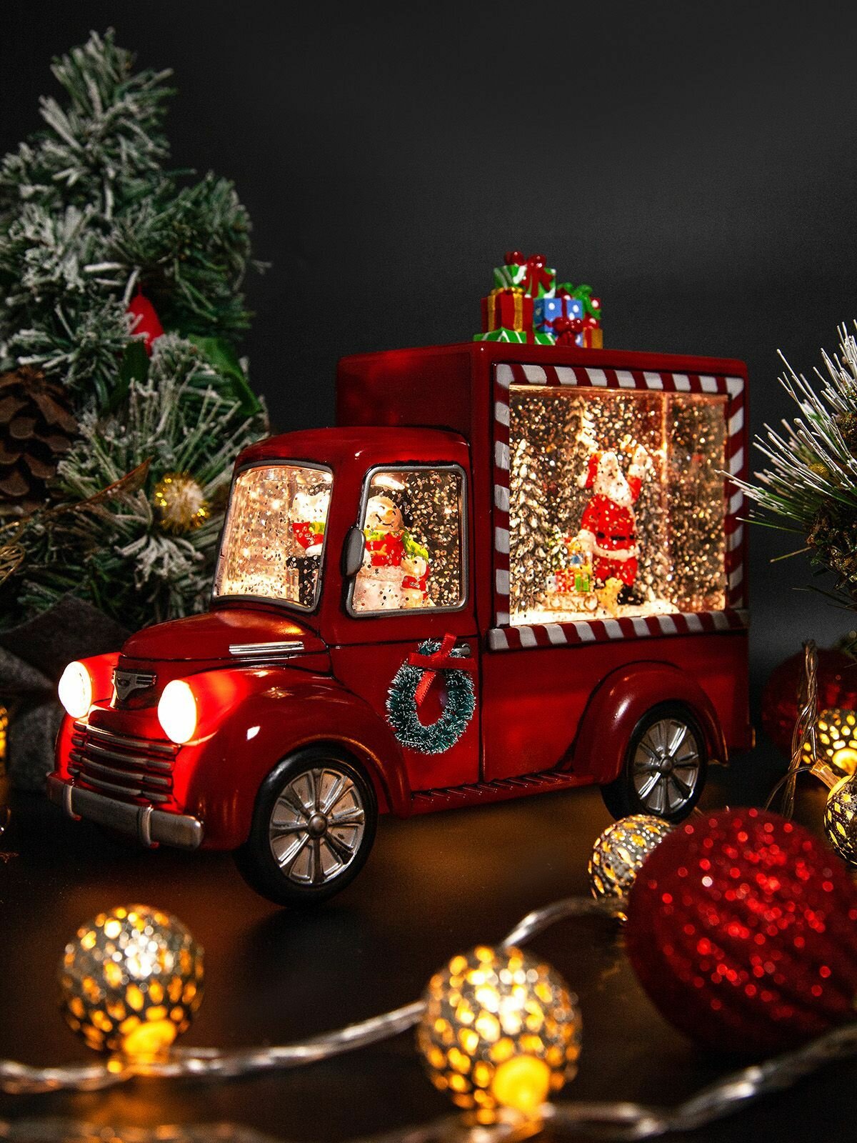 Купить Новогодний светильник и фонарь "Автомобиль подарков" с метелью и встроенными мелодиями