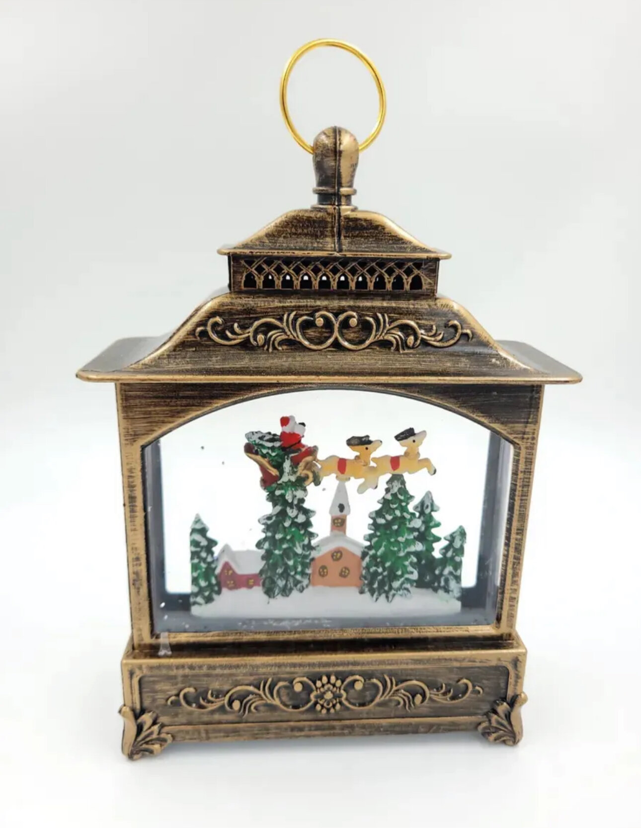 Новогодний фонарь-светильник Kosmo.store "Санта с оленями", музыкальный, со снегом